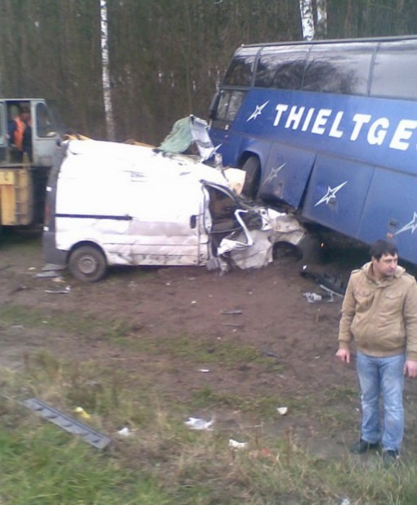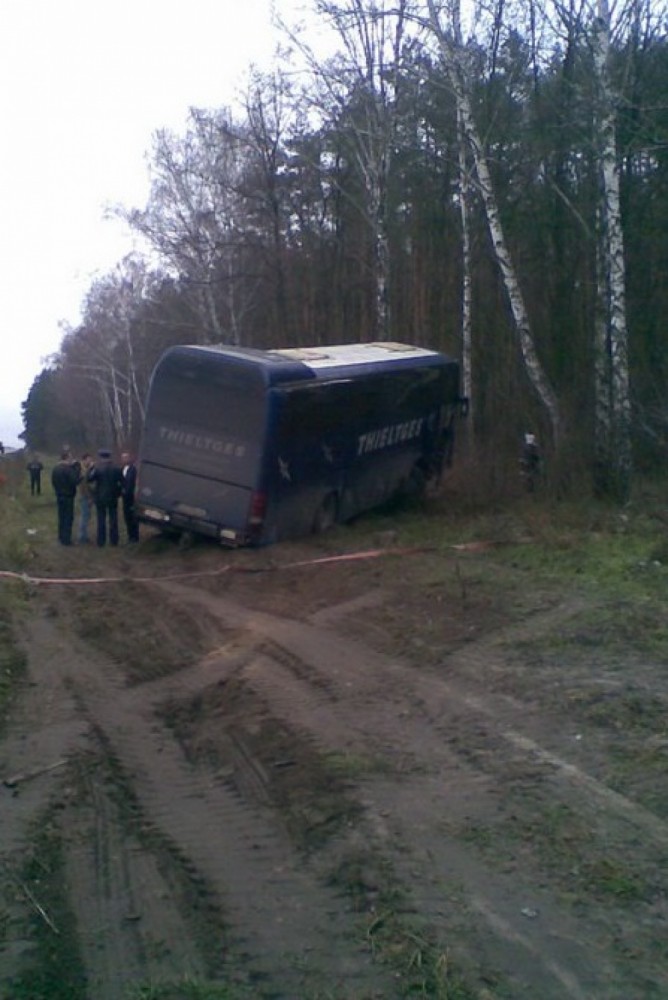 ДТП с участием рейсового автобуса «Неоплан», следующего по маршруту Калининград — Одесса, произошло 18 ноября на 94 километре трассы Киев-Чоп. Об этом сообщает пресс-служба Житомирского облУВД. 22-летний водитель автомобиля «Опель Виваро», двигаясь в попутном с автобусом направлении, решил обогнать его по левой полосе, но не рассчитал и зацепил «Неоплан» правым зеркалом заднего вида. В результате водитель «Опеля» окончательно потерял управление, из-за чего оба транспортных средства оказались в кювете. В момент аварии в «Неоплане» находились десять пассажиров и два водителя, в микроавтобусе «Опель» ехали также 20-летняя девушка и 43-летний мужчина – сестра и отец водителя. Мужчинам удалось самостоятельно выбраться из разбитого авто, девушку освободили сотрудники ГСЧС. Никто из пассажиров автобуса международного рейса не пострадал и не нуждается в госпитализации. Люди, находившиеся в «Опеле», доставлены в больницу, где им оказывается необходимая медицинская помощь. Фото: ГСЧС и сайта zhitomir.info СМЕРТЬ РОСІЙСЬКИМ ОКУПАНТАМ! Помітили помилку? Виділяйте слова з помилкою та натискайте control-enter |