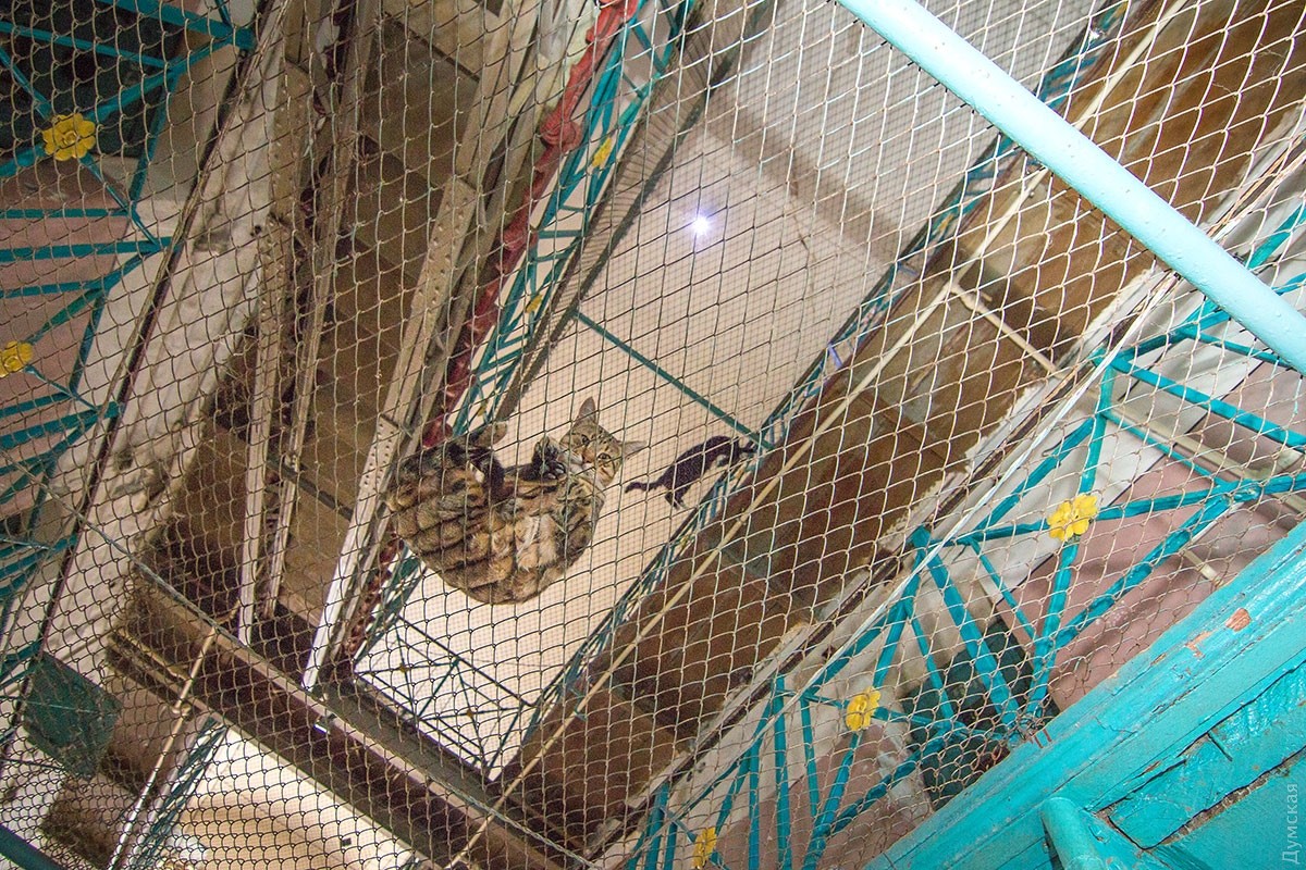 В пятом корпусе, где содержатся женщины, малолетки, взяточники и «оборотни в погонах», условия получше, чем в других. Коридор облицован новой плиткой, а на сетке, разделяющей ярусы корпуса, лениво потягиваются коты.