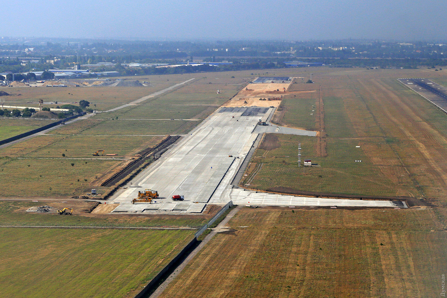 Сооружение новой взлетно-посадочной полосы международного аэропорта «Одесса» продвигается неплохими темпами. Американский бетоноукладчик уложил несколько сотен метров нового сооружения, но, вопреки бравурным реляциям министра инфраструктуры, завершить укладку бетона в этом году не получится. По крайней мере, так говорят опрошенные «Думской» эксперты. Как и предполагалось, работы по окончательной заливке начались с южного торца (курс 340). Первая полоска финишного слоя будущей взлетки была уложена еще 31 августа. В тот день за 11 часов совместной работы многих служб удалось залить первые 400 метров финишного покрытия шириной 7,5 метров. По итогам этого дня были внесены правки в логистику всей будущей работы, и можно надеяться, что к концу сентября будет уложено 400 метров полосы на всю проектную ширину. Надо сказать, что общая ширина бетонного слоя должна быть намного больше декларируемой рабочей ширины в 45 метров — всего около 58-60 метров. При благоприятных погодных условиях строителям к концу ноября удастся полностью залить до 1200 метров полосы. По мнению экспертов, заливка возможна и в декабре, но однозначно, до конца этого года «Автомагистраль-Юг» основной объем работ не выполнит. По информации «Думской», зарплата за июль была выплачена наемным рабочим в полном объеме только к вечеру 12 сентября. Тем не менее, у них осталось много вопросов — некоторые работают по 12-14 часов в день, но за переработку им не доплатили. Бытовые условия тоже оставляют желать лучшего: на 150 строителей в бараке была всего одна стиральная машина, которая, увы, сломалась. Сушить свои вещи после стирки и осенних дождей негде. Ощущается нехватка профессионалов, особенно такой редкой специальности, как бетонщик. Но есть и положительные новости. «Автомагистраль-Юг» заасфальтировала около 500 метров дороги, ведущей к стройплощадке, которую за 10 месяцев разбили ее большегрузные самосвалы. С восточной стороны старой взлетки в начале этого года тоже началась большая стройка. Стройплощадку огородили внушительным забором высотой около 2,5 метров с шапкой из колючей проволоки. На некоторых снимках можно увидеть большой котлован и сложенные рядом с ним бетонные плиты и полукруглые элементы, при стыковке которых образуются трубы большого (около 1 метра) диаметра. Никто из ответственных работников аэропорта не смог прояснить для нас ситуацию, но «Думская» все-таки выяснила назначение загадочной стройки — это будущая ливневая канализационная система, предназначенная для стоков новой взлетно-посадочной полосы. Новая специализированная система будет эффективно работать во время сильного ливня, чтобы потоки дождевой воды, бегущие с бетонной поверхности не размывали грунт рядом с полосой. В противном случае рядом могут образоваться подтопленные территории, а под полосой — пустоты из-за смещения грунта. Ливневой поток будет уходить в дренажные каналы, после чего сливаться в большие подземные резервуары — именно их сейчас и строят рядом со старой ВПП. Далее вода спокойным потоком будет уходить в городскую канализацию. Предусмотрена очистка стоков. Фото Сергея Смоленцева СМЕРТЬ РОСІЙСЬКИМ ОКУПАНТАМ! Помітили помилку? Виділяйте слова з помилкою та натискайте control-enter Новини по цій темі: 18 квітня 2024: Ексмер Одеси Олексій Костусєв ховається від слідства в елітному ра