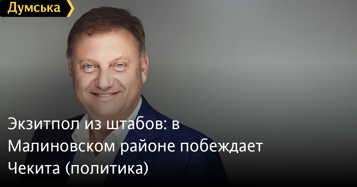 Согласно экзитполу, проведенному на избирательных участках Малиновского района, на 134 округе побеждает Геннадий Чекита. Опрос проведен штабом кандидата. Чекита набирает 26,3% голосов, второе место у представителя «Слуги народа» Олега Колева: за него — 24,2 %, на третьем месте — Евгений Червоненко с 9,7% голосов. СМЕРТЬ РОССИЙСКИМ ОККУПАНТАМ! Заметили ошибку? Выделяйте слова с ошибкой и нажимайте control-enter |