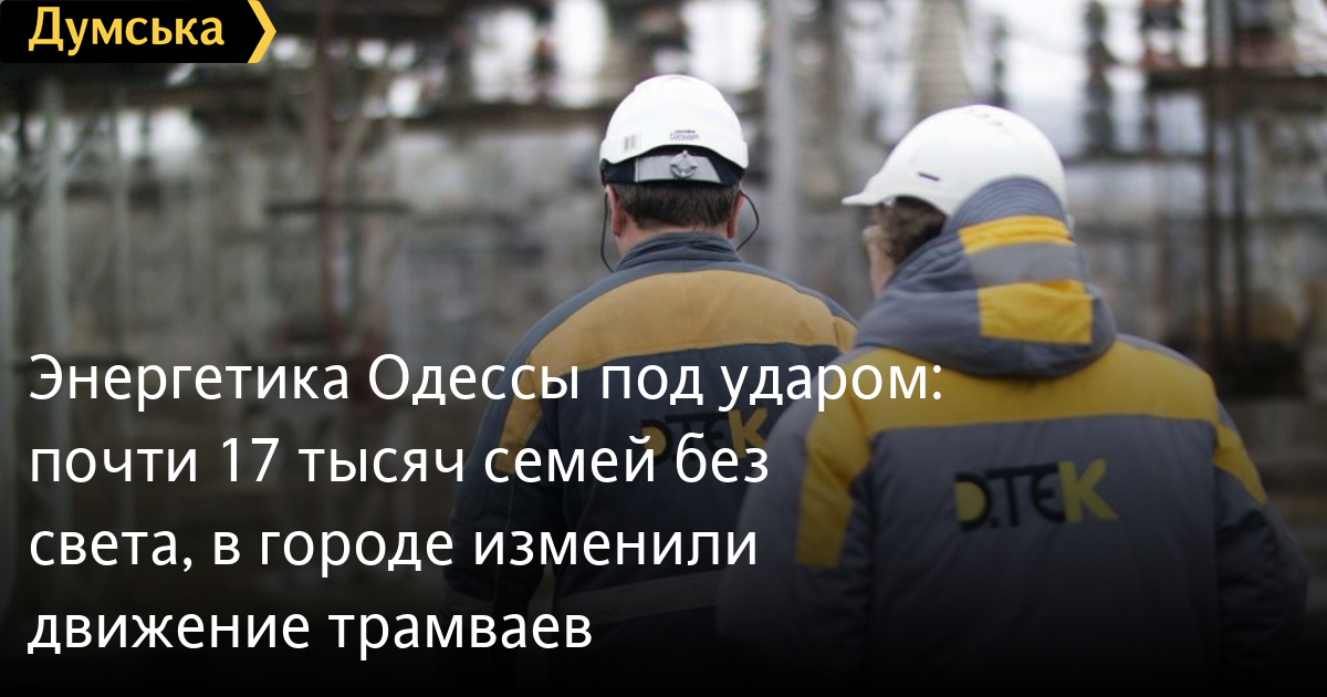 Энергетика Одессы под ударом: почти 17 тысяч семей без света, в городе изменили движение трамваевИз-за ночной атаки без света остаются 16,7 тыс. семей в Приморском, Хаджибейском и Киевском районах Одессы. В ДТЭК подчеркивают, что последствия обстрела энергетического объекта очень сложные, поэтому восстановительные работы потребуют времени. К утру специалистам уже удалось перезапитать критическую инфраструктуру и вернуть электричество в дома почти 3 тысяч семей, однако ситуация в трех районах города остается напряженной. Специалисты выполняют осмотр оборудования, разбирают завалы, после — приступят к ремонтам. По техническим причинам внесены изменения в движение трамвайных маршрутов. Трамвай №17 курсирует по сокращенной схеме: «Куликово поле — 11-я станция Большого Фонтана». Трамвай №18 сегодня не будет курсировать. Для удобства пассажиров на участке от 11-й до 14-й станции Большого Фонтана организовано движение бесплатного (социального) автобуса №18к с интервалом в 30 минут. СМЕРТЬ РОССИЙСКИМ ОККУПАНТАМ! Заметили ошибку? Выделяйте слова с ошибкой и нажимайте control-enter |