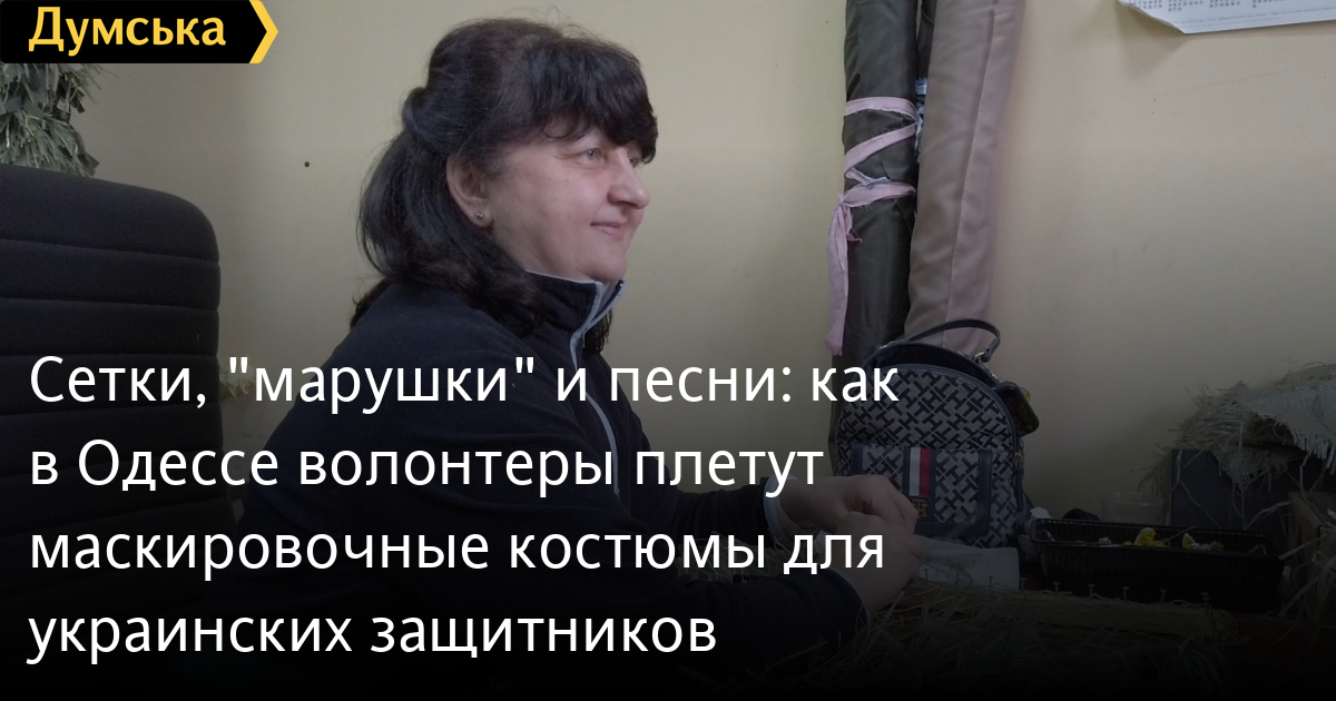 Сетки, «марушки» и песни: как в Одессе волонтеры плетут маскировочные костюмы для украинских защитниковВ одесском офисе «Европейской Солидарности», который превратился в волонтерский центр, мастерицы вместе с маскировочными сетками плетут также «кикимор» — маскировочные костюмы для наших защитников. Сами девушки называют их «марушки». Большинство волонтеров занимаются плетением с 2014 года. Одна из опытных мастериц по имени Светлана даже придумала способ, как сделать маскировочные костюмы более легкими и водонепроницаемыми. «Марушки», которые мы делали, сначала были очень тяжелые, они впитывали много влаги. Поэтому мы стали думать как сделать их более легкими, и совершенно случайно попались нам на глаза мешки, в которых обычно хранят сахар или еще что-то. Они были соответствующего цвета и я догадалась, что их можно использовать. Такие «марушки» не промокают и легкие как перышко», — делится секретом Светлана. Основа для маскировочного костюма — обычная рыболовная сеть. Волонтеры распускают мешки на ленты и каждую провязывают. На одну «марушку» мастерица тратит пять дней. Такие обереги, говорят девушки, заряжают на успех. «Заказов очень много, не успеваем выполнять их быстро. Я волонтерю с утра до вечера каждый день. Сделали много, я уже сбилась со счета. Материалов нам хватает — что-привозят, что-то покупаем. Военные очень благодарны, даже замуж зовут, но мы пока идем к победе», — рассказывает волонтер Наталья. Впереди еще много работы и девушки поддерживают друг друга и хорошее настроение песнями. СМЕРТЬ РОССИЙСКИМ ОККУПАНТАМ! Заметили ошибку? Выделяйте слова с ошибкой и нажимайте control-enter |