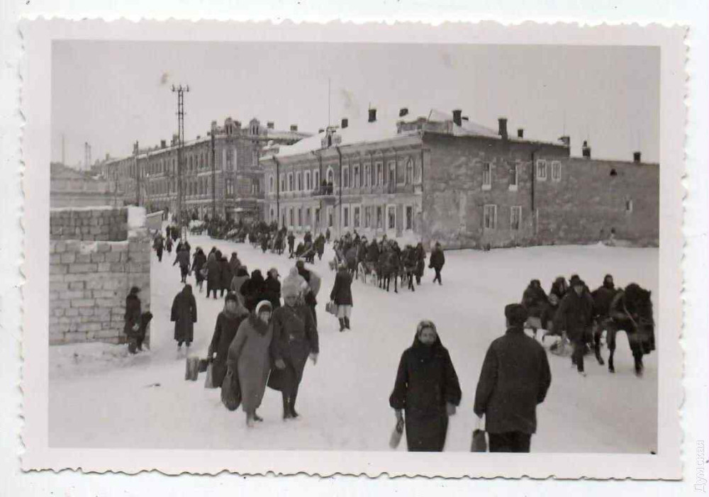 ФОТОГРАФИЯ ОБРЕЧЕННЫХ И ГЛАВПОЧТАМТ Тогда была такая же погода. Такой же снег. И мороз. Ты чувствуешь, что идешь на смерть. Все тело дрожит. Упирается. А маленькая подленькая надежда лжет. — Все обойдется. Пройдешь немного по гололеду, а там, глядишь, румын в белом поварском халате поверх формы супчика нальет. А от миски пар будет идти. А супчик тот не на воде. Не голый кипяток. А будут в нем картошка плавать. И кружок морковки. И тюлечка разваренная. — Но говорят, что убивают там, — стуча зубами, сопротивляешься ты. — Трупы в гетто смерзшиеся лежат! — Не могут немцы то такого сделать. Культурная нация. Вон и профессор вместе с нами идет. Золотая оправа на носу, — успокаивает надежда. И ты покоряешься с тоской, думая, что еще можно вот сейчас за угол свернуть и дворами убежать. А ноги несут сами. В гетто. Ты видишь выпученные глаза своих одноклассников высовывающихся из-за забора. Кто-то свистит и задорное: Повели! И слезы бессилия замерзают на щеках. И они шли. Иногда почти без охраны. Тащили чемоданы. Узлы. Тысячи и тысячи одесских евреев. Уходили на смерть. Павел Козленко вертится на ветру, сжимает фотокарточку в целлофане. Сверяет фото с теперешним вымороженным пейзажем. «Вот тут они шли. Тут и спуск». фото из архива Павла Козленко Павел Козленко, вице-президент благотворительного фонда «Памяти жертв нацизма», купил фотографии евреев, которых ведут из Слободского гетто. Настоящие оригинальные фотографии с лицами этих людей. За них сейчас дорого просят. Под 500 долларов за фото. Цены умопомрачительные. Узнали, что евреи собирают все, что напоминает о ШОА, и взвинчивают цены. Как в гетто. Тогда тоже насмешливо говорили: — Эй, еврей! Хочешь пару картофелин? Снимай обручалку! На фото Слободская улица. Идут чьи-то мамы, бабушки, сестры. Это было как раз возле суконной фабрики. На санках тащат пожитки. Старики, сутулые, осторожно переставляющие ноги по скользкому снегу. Дети — маленькие, прижатые к взрослым, почти растворенные в общей массе. Исход, в котором слово «исход» не библейское, а окончательное. Слишком холодно. Слишком безысходно. Дайте дух перевести. Вся Одесса тогда следила за этим походом. И в кафе пили кофе, морща нос от дыма из пороховых складов. И старались не замечать. Не слышать шарканья тысяч ног. Неужели это может повториться? А разве нет? НОГАМИ ПОПИРАЯ ОККУПАНТОВ Есть у нас необычный Музей геноцида «Территория памяти». Вы там не были? ВЫ ТАМ НЕ БЫЛИ? Даже не говорите об этом. Не позорьтесь. Сходите! Только сюда заходишь — и тут же видишь под ногами форму солдата вермахта с боевыми наградами, с пистолетом-пулеметом, который называют шмайссером. Топчешься по нему. Селфишься. Славно. Только ради этого нужно сходить. Тут как будто сразу заявляют: таков удел всех, кто пришел убивать! Музей в здании Главпочтамта на Садовой. Тоже знаменательное место. Ох. Сколько советского народу бегало сюда на международные переговоры. Как шифровано говорили в кабинках с уехавшими родственниками, зная, что все разговоры прослушиваются. А с Израилем после разрыва дипломатических отношений в 1967 году поговорить вообще было практически невозможно. Вспоминает Аарон Мунблит, который был еврейским активистом и одним из лидеров движения «отказников». Ему в ту пору часто звонили из Иерусалима. «Я часами томился на переговорном пункте в ожидании этих разговоров. 