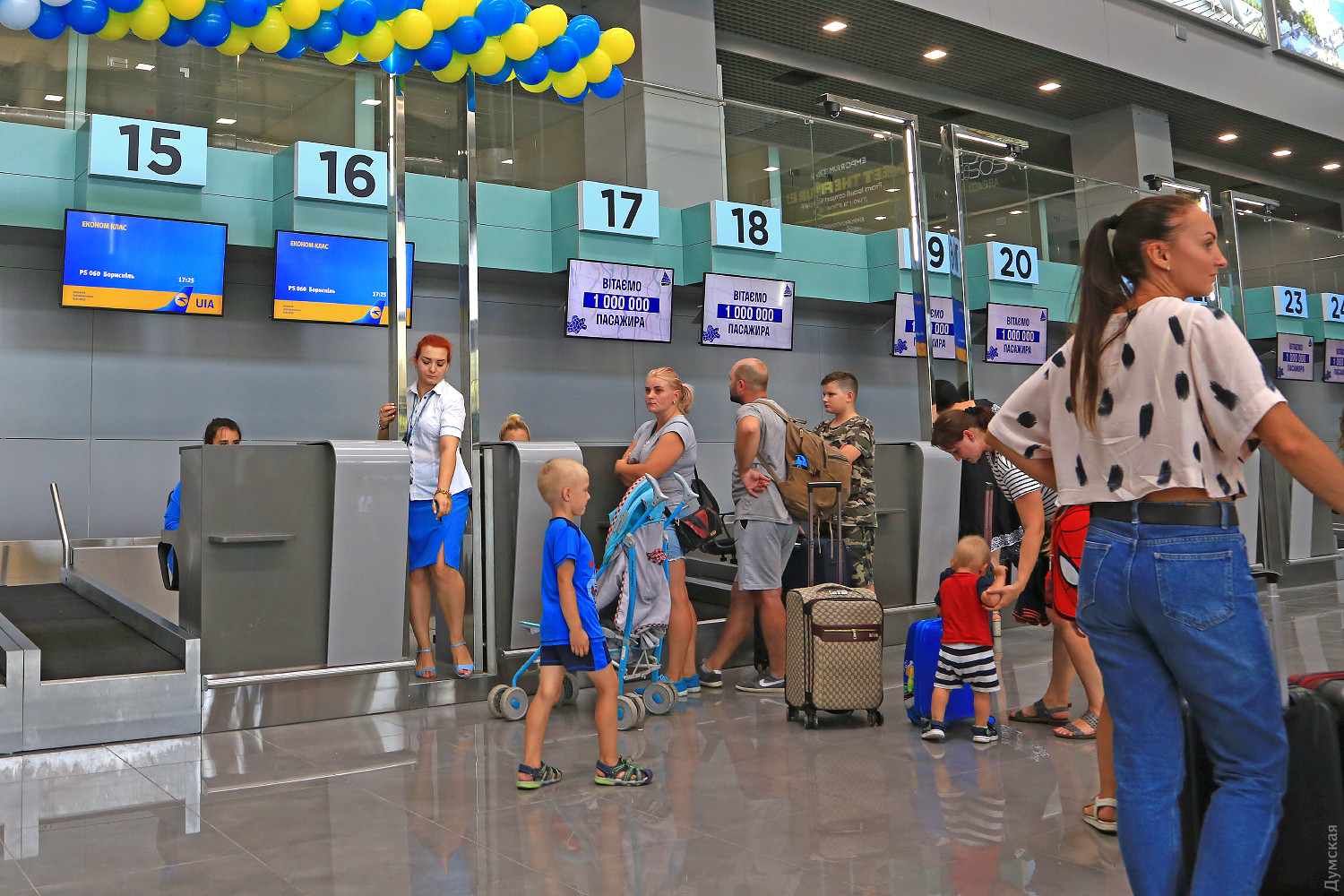 Одесский аэропорт обслужил миллионного пассажира: повезло переводчице, которая летела в ГрузиюВ Международном аэропорту «Одесса» сегодня чествовали миллионного пассажира 2019 года. Повезло одесситке Юлии Котковой, которая вылетала на самолете авиакомпании МАУ в аэропорт «Борисполь». Корреспондент «Думской» присутствовал на событии. У стоек регистрации в зале вылета нового терминала собрались представители авиакомпании и руководство ООО «Международный аэропорт Одесса». Интрига сохранялась до самого последнего момента — никто не знал, кто станет миллионным пассажиром. Согласно подсчетам, «миллионник» должен был улететь рейсом Одесса — Борисполь авиакомпании МАУ, поэтому менеджеры занимались окончательным определением возле стойки регистрации. В итоге директор по маркетингу и коммерции предприятия Вячеслав Чеглатонев взял большой букет цветов и вручил его пассажирке, которая как раз проходила регистрацию. Счастливица изначально подумала, что это какой-то розыгрыш. «Конечно, я сначала не поверила, что такое может быть, — рассказывает Юлия. — Сегодня у меня вообще очень странный и интересный день — я постоянно попадаю в неожиданные ситуации, как будто меня кто-то вел к этому событию». Юлия призналась, что летит на отдых к друзьям в Грузию, именно они и подарили ей этот билет и пригласили в гости. Девушка работает переводчицей и часто бывает за границей. Подаренный букет показался ей очень похожим на свадебный, кстати, она не исключает, что осенью у нее состоится свадьба. «Я часто путешествую и по работе, и езжу на отдых, но я не знала, что новый терминал аэропорта уже работает на вылет. Сегодня я как обычно пришла на регистрацию в старое здание, и слава Богу, случайно услышала разговор о том, что этот рейс обслуживается в новом зале вылета», — призналась Коткова. Кроме букета, Юлия Коткова получила еще несколько презентов. Так, перевозчик — авиакомпания МАУ, презентовала сертификат на 50% скидки при перелете на любом направлении из Украины и обратно для двоих человек. Аэропорт подарил памятный приз и внес Юлию в списки VIP-обслуживания в любое время суток в течение года. Надо сказать, что пассажиропоток одесского аэропорта по сравнению с прошлым годом заметно вырос. «В 2018 году мы встречали нашего миллионного пассажира в сентябре, а сейчас середина августа. Количество пассажиров на этот период с начала года выросло примерно на 12%. Благодаря новым направлениям и развитию инфраструктуры аэропорта, есть все предпосылки, что в следующем году мы преодолеем миллионную отметку значительно раньше», — отметил директор по маркетингу и коммерции ООО «Международный аэропорт Одесса» Вячеслав Чеглатонев. Фото Сергея Смоленцева СМЕРТЬ РОСІЙСЬКИМ ОКУПАНТАМ! Помітили помилку? Виділяйте слова з помилкою та натискайте control-enter Новини по цій темі: 18 квітня 2024: Ексмер Одеси Олексій Костусєв ховається від слідства в елітному районі Лондона: стала відома його адреса 29 березня 2024: Справа про заволодіння аеропортом "Одеса": ексвіцемер Орловський відбувся умовним терміном 28 лютого 2024: Відкрити українське небо: чим Бориспіль відрізняється від Бен-Гуріона і що потрібно зробити для відновлення авіасполучення? 23 лютого 2024: Костусєв ховається у Лондоні: за крадіжку одеського аеропорту його судитимуть заочно 11 грудня 2023: Ексмера Одеси Костусєва зао
