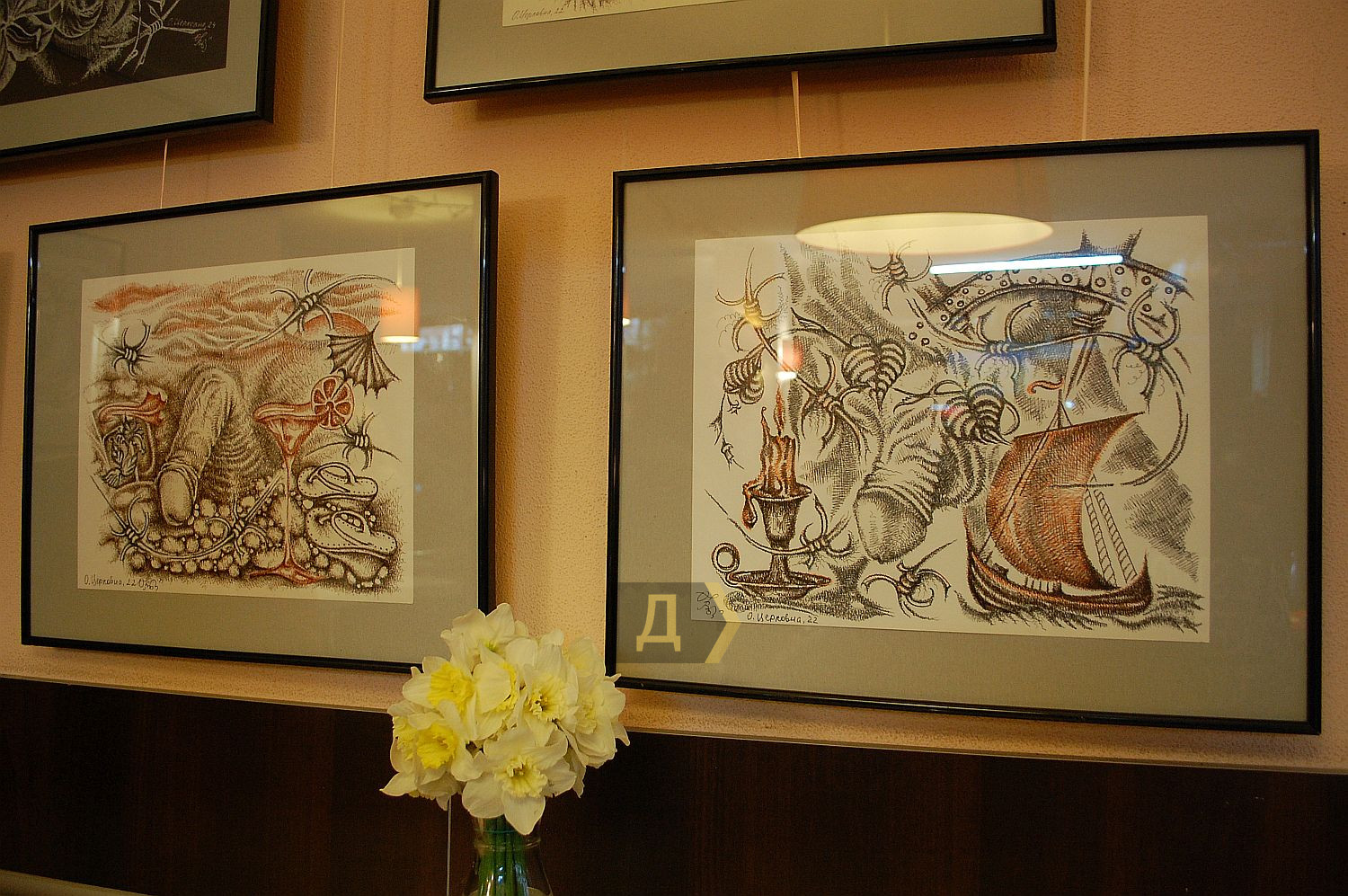 Виставка графіки Оксани Церковної «Мрії про мирне літо» працює в андеграундній галереї «Вікно» (Ніжинська, 31). Вибагливі композиції, зображені лінерами на акварельному папері, мають в центрі саме фалос, до того ж не в робочому стані. Мисткиня представила першим глядачам і модель, це її колега, живописець Костянтин Малаховський, так би мовити, «каліппіг». Хороша натура завжди є запорукою успіху в мистецтві, навіть якщо настрій автора неприховано алармістський. Оксана малює світ, в якому виключені страхи, тут вона дозволяє самій собі відчувати абсолютну свободу, безтурботність і відкритість до нового: аркуші «Відсутність обмеження», «Діалог неусвідомленого з усвідомленим», «Пошук орієнтира в хаосі». В малюнку «Творча потенція» в одному просторі із фалосом присутня фотокамера як символ контролю, фіксації моменту та конструювання нового бачення світу.