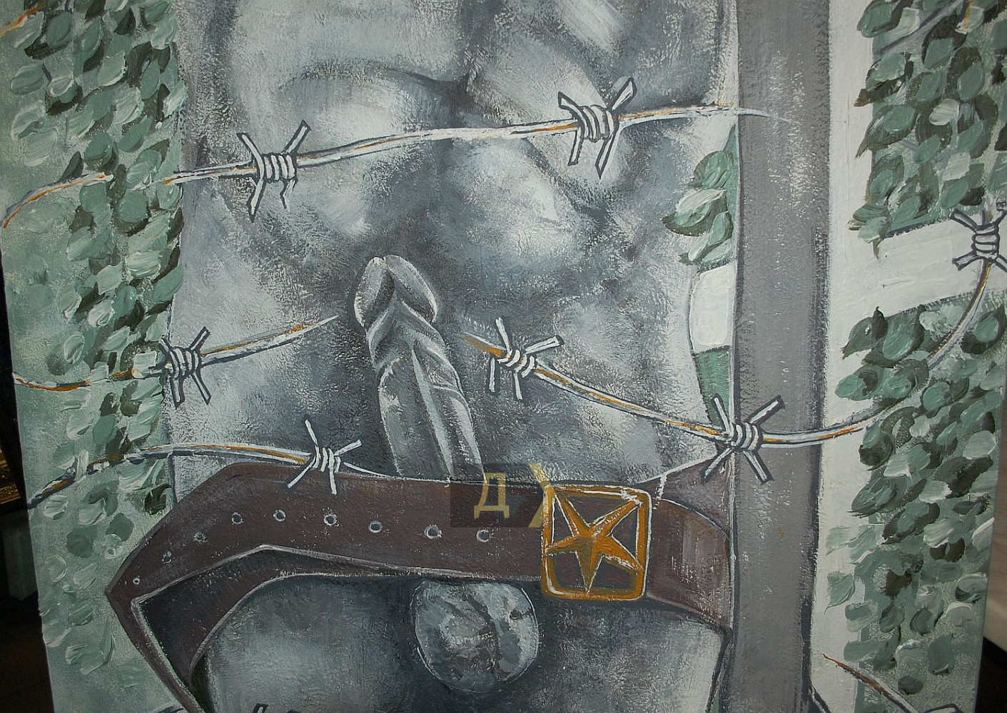 На многих картинах эта проволка как явный намёк на то, что власть превратила большинство украинских мужчин в заключённых, а Украину — в тюрьму для них.