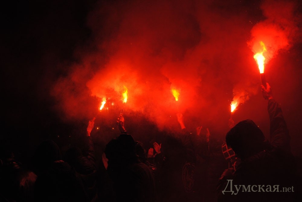 Фаны «Черноморца» прошли шумным маршем по центру Одессы и готовят зрелище для 25 голландцевВ эти минуты в Одессе уже вовсю идет матч Лиги Европы между «Черноморцем» и нидерландским ПСВ. Онлайн, как всегда, можно читать на сайте наших партнеров из «Победы», ну а мы расскажем об околофутбольных событиях. За полтора часа до начала встречи по центру города прошла шумная толпа фанатов «моряков». На сей раз они скандировали не обычное «Чеееерноморец!», а вполне патриотическое «Одесса!», что весьма приятно. Ультрас жгли фальшфейеры, взрывали петарды, — словом, развлекались, как могли. За их поведением бдительно следила родная милиция, которая недавно тренировалась усмирять расшалившихся фанов. В итоге ни одна машина не сожжена, все витрины по маршруту следования толпы целы. Пока Группа поддержки ПСВ в составе 25 жителей славного города Эйндховена прибыла на стадион спустя 40 минут после «черно-синих». Голландцев охраняли, словно иностранное посольство, — приблизиться к ним не дали даже журналистам, которых уж точно не заподозришь в желании набить морды подданным улыбчивого короля Виллема-Александра. Впрочем, вряд ли такой целью задаются и наши хулиганы. По данным «Думской», они хотят поразить воображение голландцев другим — масштабным модульным шоу: сразу семь трибун главного городского стадиона окрасятся в черный и синий цвета одесской команды. В перфомансе будут участвовать свыше трех тысяч человек. Ваш корреспондент передает с места событий, что специально к мачту парк Шевченко, где находится стадион «Черноморец», обесточили. Правда перед началом игры часть фонарей включили, но только на центральной аллее. Очевидно, коммунальщики захотели создать интимную обстановку для общения фанатов. Больше фото и видео — у «Победы» СМЕРТЬ РОСІЙСЬКИМ ОКУПАНТАМ! Помітили помилку? Виділяйте слова з помилкою та натискайте control-enter Новини по цій темі: 29 липня 2025: В Усатово Одеської області сталася перестрілка: поліція працює на місці (відео, оновлено) 28 липня 2025: П'яний на "Ягуарі" або гіпертонік? Звільнений топ-посадовець одеської поліції хоче повернутися на службу 19 червня 2025: Дівчинку, яку шукали сотні одеситів, знайшли вбитою: поліція працює з чоловіком, ймовірно причетним до загибелі 27 травня 2025: Увели гектар в університету: на Одещині засудили земельних аферистів, але без посадки і Хвоста |