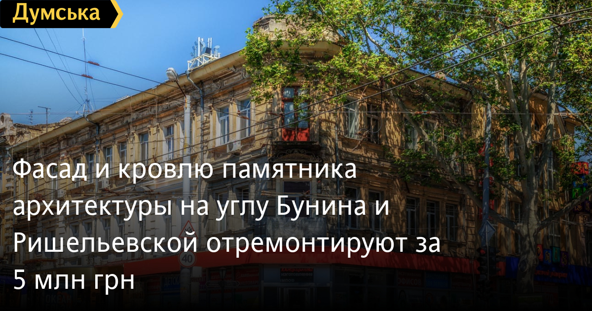 Фасад и кровлю памятника архитектуры на углу Бунина и Ришельевской отремонтируют за 5 млн грн5 млн 251 тысячу грн потратит муниципальное управление капстроительства на ремонт фасада и кровли памятника архитектуры местного значения — доходного дома Наумовой по адресу Ришельевская, 16/ Бунина, 20. Тендер выиграла производственно-строительная фирма «Александр», которая ранее реставрировала дома на Дерибасовской и Пушкинской. Это здание она должна сдать до 31 декабря 2020 года. Трехэтажный доходный дом на углу Ришельевской и Бунина построили в 1893-1895 годах по проекту архитектора Вильгельма Кабиольского. В начале XX века его реконструировали по проекту Федора Троупянского. Дом первоначально принадлежал вдове одесского купца Марии Дементьевне Наумовой. СМЕРТЬ РОССИЙСКИМ ОККУПАНТАМ! Заметили ошибку? Выделяйте слова с ошибкой и нажимайте control-enter Новости по этой теме: 26 июня 2025: Сомнительный подарок: памятник архитектуры на Приморском бульваре пытаются вернуть одесской громаде 17 августа 2025: Продают мерч в зале Костанди, прячут Древний Египет в подвалах и выставляются в Германии: как выживают одесские музеи (часть первая) 27 февраля 2025: Компания из группы Коломойского готовится к строительству торгового центра возле Дерибасовской 28 ноября 2024: Дом с "костылями": памятник архитектуры в одесском переулке Ройтбурда ждут противоаварийные работы за 20 млн грн (фото) |
