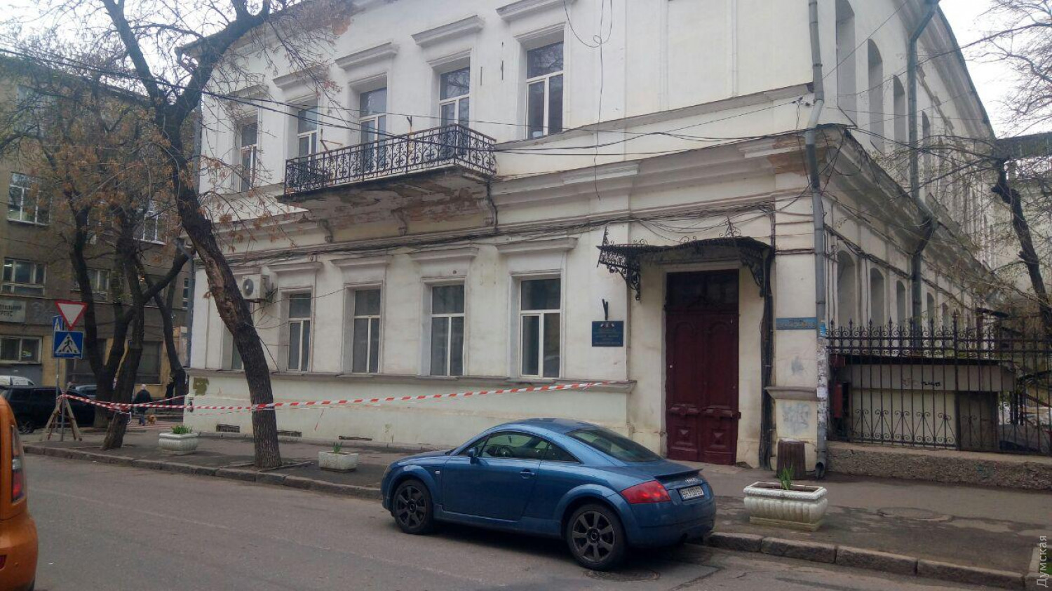 Со здания Одесского областного института усовершенствования учителей, что в переулке Нахимова, падают фрагменты фасада.
