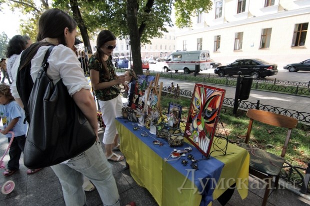 Сегодня и завтра на Приморском бульваре проходит «Вышиванковый фестиваль». Одесситы могут посетить ярмарку, которая протянулась вдоль бульвара, где можно приобрести украшения, и керамические изделия, и сувениры, и разнообразные вышиванки.