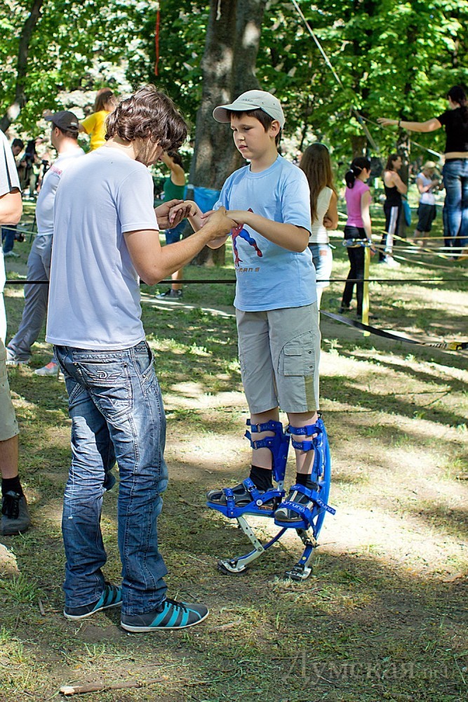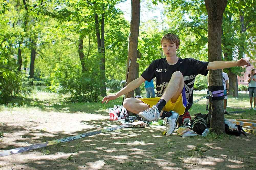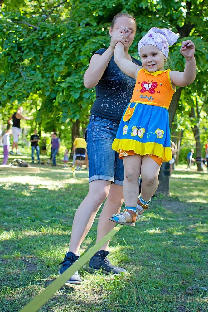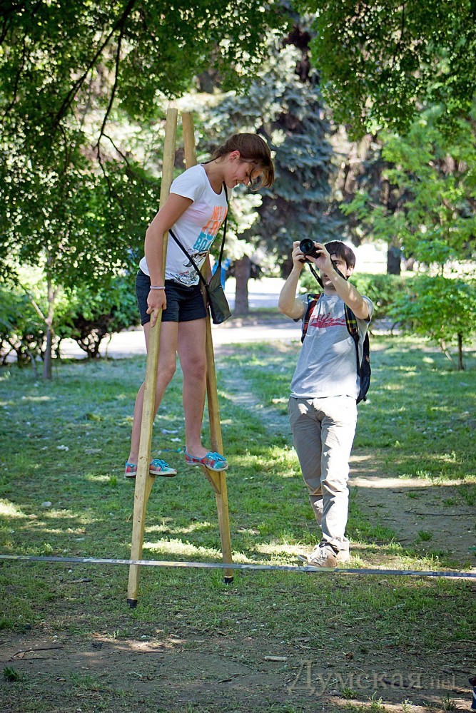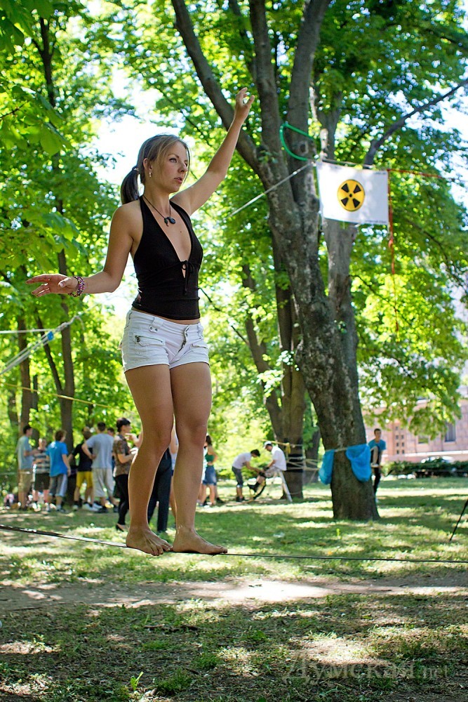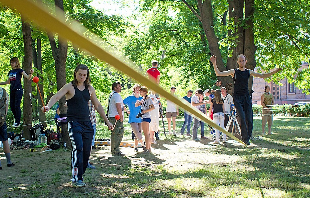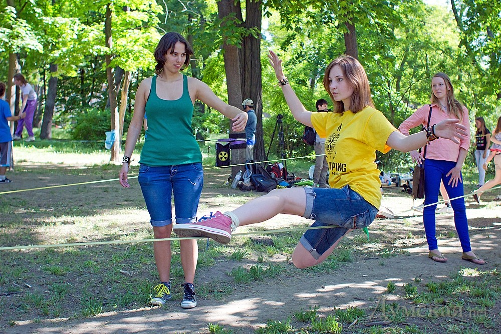 Кроме слэклайна, любой желающий гость фестиваля мог научится также ходьбе на ходулях, прыжках на джамперах, кручению файеров и многим другим экстремальным штукам.