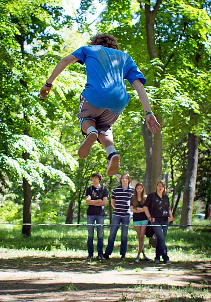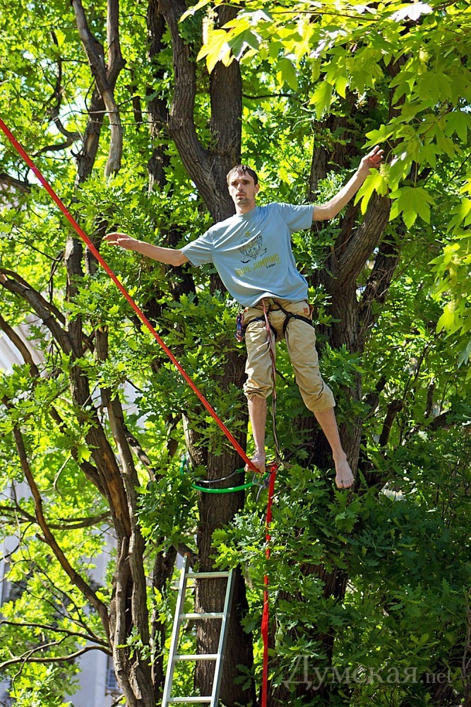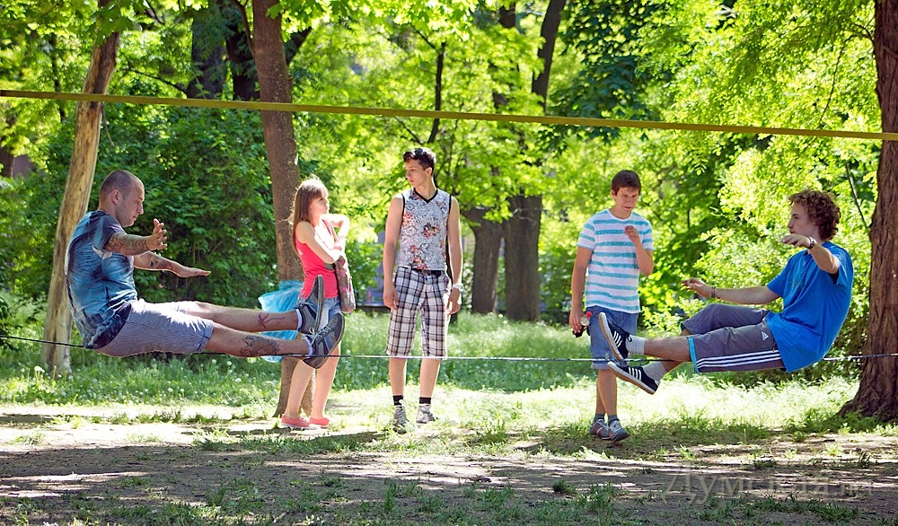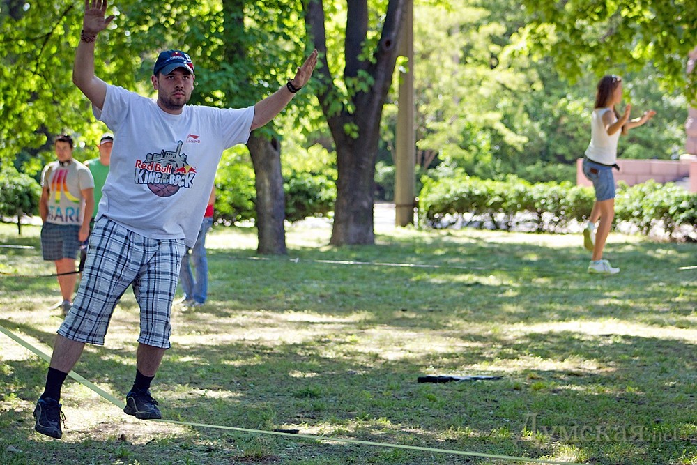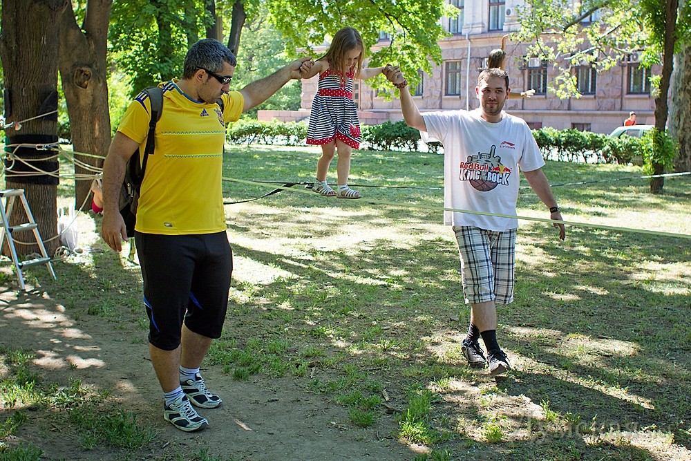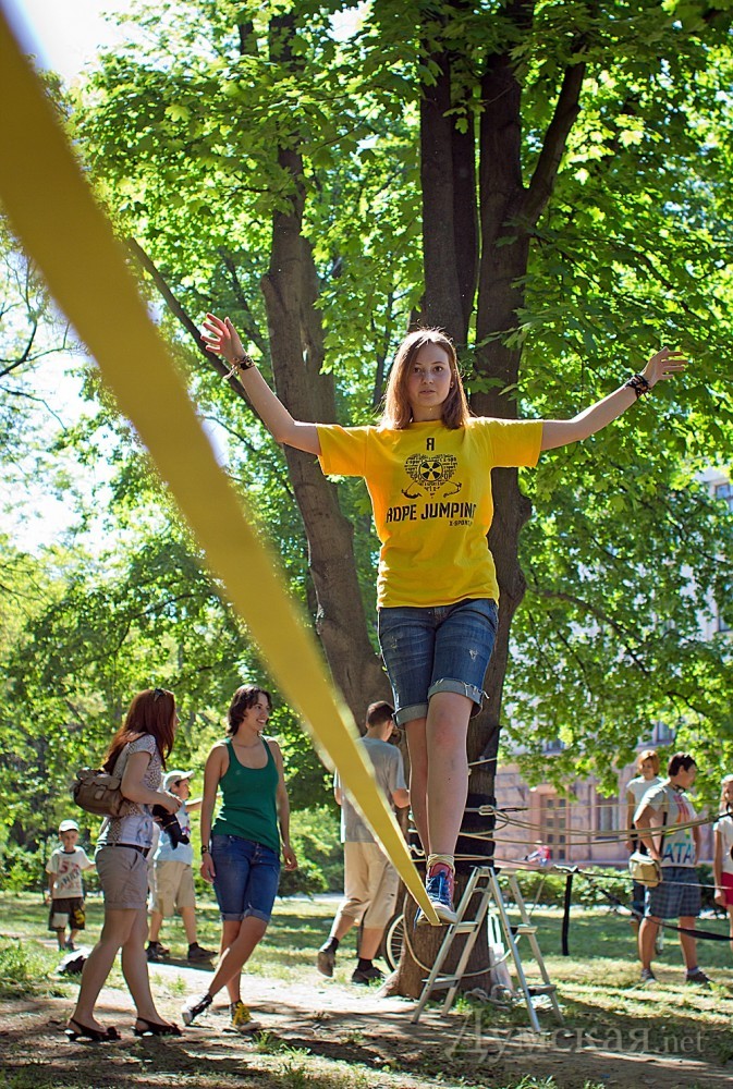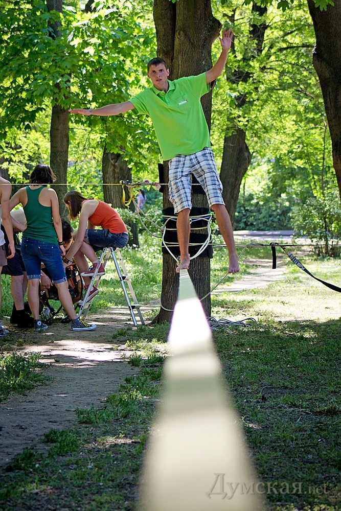 Первый в Одессе фестиваль экстремальных видов спорта проходит сегодня на Куликовом поле. Команда X-sport, известная организацией роуп-джампинга по всей Украине, решила ознакомить одесситов с необычными видами активного отдыха. Открытием фестиваля стал совершенно новый для нашего города вид спорта – слэклайн. Это - хождение и выполнение сложных акробатических элементов на натянутой стропе.