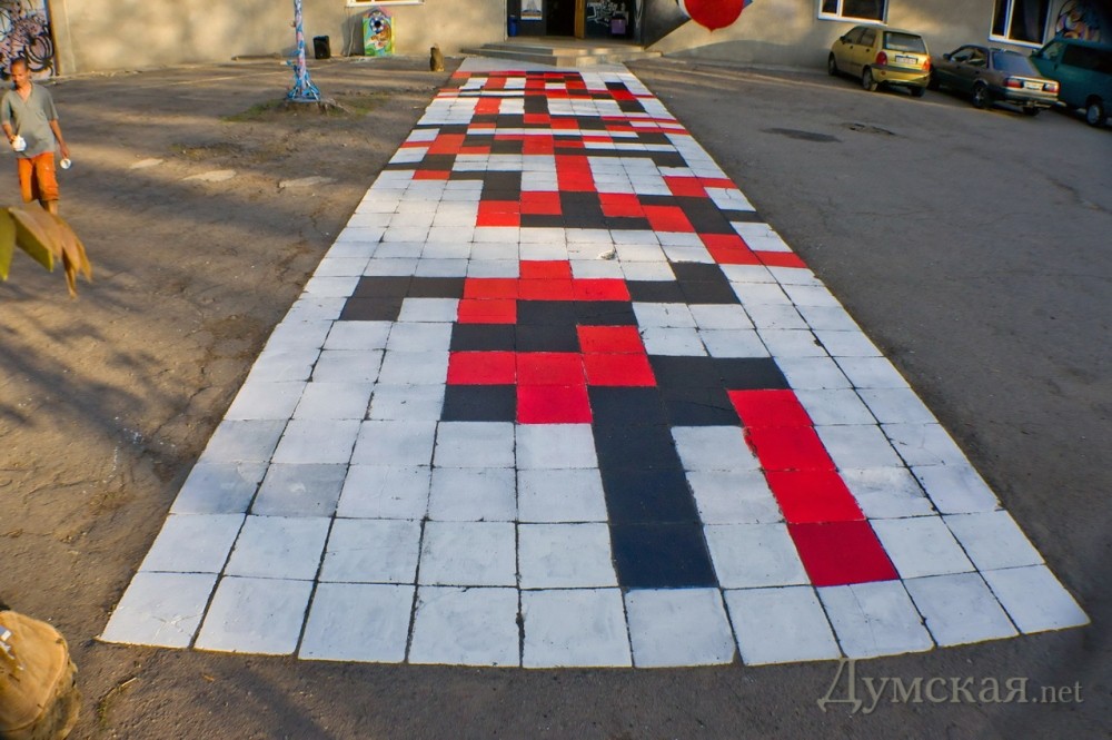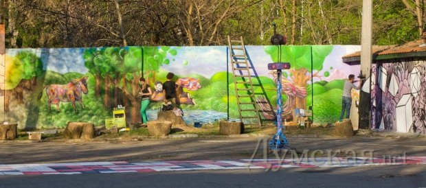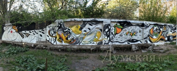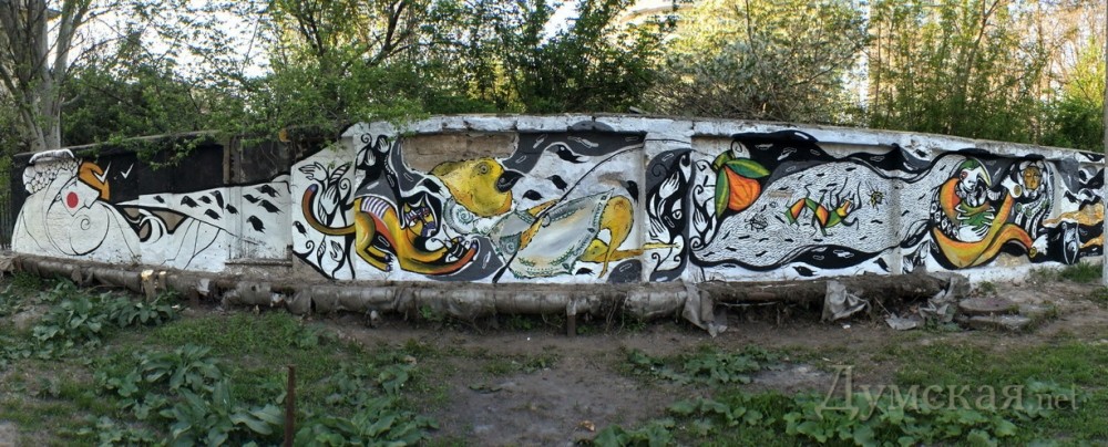 Фестиваль уличного искусства в Одессе. Буратино в заточении и волк с винтовкойВ Одессе состоялся Фестиваль уличного искусства Public: street-art-fest. Целую неделю с 20 по 27 апреля художники из разных регионов Украины расписывали ограждения Шампанского переулка, а в завершении перед еще не обсохшими монументальными полотнами устроили концерт. Художники TRSHR, ШАМ, HAPPYMAN и Кирилл Максименко из Одессы, ARS из Киева, Сергей Радкевич и RUDEVISKA из Львова, PETRUCCHO и ШУ из Харькова, MariannaTarish и SergeySerko из Херсона и AZO из Луцка творили под психоделическую музыку. Потому и полотна получились достаточно сюрреалистическими. Например, в центре двора установили аиста на гнезде из металла. Плитку превратили в тетрис, а стены — в порталы в другие миры. На одном из них надувает щеки великан, на других буратино роет подземный ход, на третьем — кубы и цветы на сиреневом. На огромном панно шествуют сгорбленные люди в черном под дулом винтовок в лапах зверей. Музыкальную точку на фестивале поставили украинцы из «Дички» и поляки из « Miąższ». Свое направление музыканты называют «тревожно-танцевальным». Это смесь панк-рока с фолком, джазом, фанком и романтической лирикой. Фото: Николай Вдовенко СМЕРТЬ РОСІЙСЬКИМ ОКУПАНТАМ! Помітили помилку? Виділяйте слова з помилкою та натискайте control-enter |