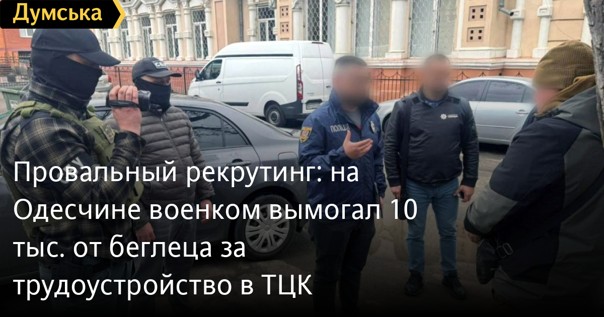 Провальный рекрутинг: на Одесчине военком вымогал 10 тыс. от беглеца за трудоустройство в ТЦКНачальник группы одного из отделов ТЦК в Одесской области попался на взятке. За 10 тыс. долларов он хотел трудоустроить сбежавшего в самоволку военного на одну из вакантных должностей в территориальном центре комплектования, сообщили в прокуратуре. По данным «Думской», речь идет о Белгород-Днестровском ТЦК и его сотруднике. Также он обещал решить вопрос с правоохранительными органами о прекращении дела о побеге из части. Если военный не заплатит, пригрозил создать проблемы с последующим возвращением на военную службу. Правоохранители задержали военкома во время передачи последнего транша. Подозреваемый уже под стражей, но может выйти, заплатив залог почти миллион гривен. Уголовное производство открыли по ч. 3 ст. 369-2 УК Украины (получение взятки за влияние на принятие решений должностными лицами, с вымогательством). Ему светит до 8 лет тюрьмы с конфискацией имущества. Проверяется причастность других лиц и возможные дополнительные эпизоды. СМЕРТЬ РОССИЙСКИМ ОККУПАНТАМ! Заметили ошибку? Выделяйте слова с ошибкой и нажимайте control-enter |