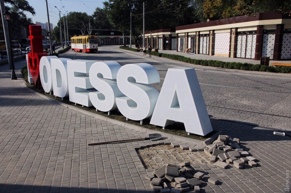 Работы продолжаются и на площадке вокруг объемной надписи «Я люблю Одессу» с логотипом города.