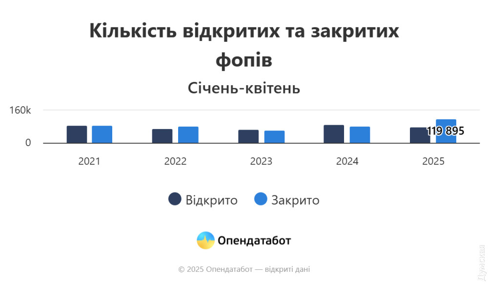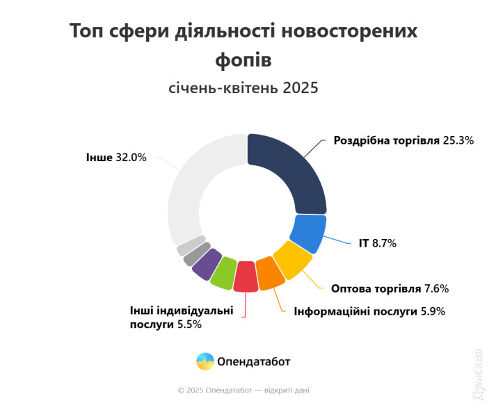 Бізнес-активність: Одеська область увійшла в топ-5 регіонів за кількістю нових підприємцівНа п'ятому місці серед регіонів України опинилася Одещина за кількістю нових ФОП, відкритих за перші чотири місяці 2025 року. За даними аналітиків Опендатабот, загалом з початку року в країні з’явилися майже 82 тисячі нових підприємців, що на 9% менше, ніж за той самий період торік. Лідером став Київ (11,6 тисячі нових ФОП), за ним слідує Дніпропетровщина (7870) та Львівщина (6186). На четвертому місті Київська область (6144), а замикає п’ятірку Одещина (5908). Чверть всіх нових підприємців займається роздрібною торгівлею — 20 763. Ще 7129 фопів обрали ІТ та консалтинг у програмуванні, а 6216 - оптову торгівлю. Як і раніше, жінки проявляють більшу активність до започаткування власної справи, ніж чоловіки: 61% проти 39% відповідно. Зазначається, що на один новостворений бізнес припадає 1,5 закритих – таких з початку року майже 120 тисяч, що на 44% більше порівняно з тим самим періодом 2024-го. «Закривались непрацюючі ФОП 1 та 2 групи, адже для них відновилися довоєнні правила сплати єдиного соціально внеску. Також був визначений військовий збір від мінімальної зарплати на 2025 рік — це 800 грн на місяць незалежно від того, здійснюють вони діяльність чи ні. Оскільки такі ФОП не ведуть реальну діяльність, вони ухвалюють рішення про закриття, аби уникнути нарахування податку. Водночас починаючи з березня 2025 року, кількість відкритих ФОП (20 029) більша за ті, що закрились (18 477). Так само й у квітні: 21 517 нових — більше, ніж закритих, на 3 899 підприємців», - зазначив голова Комітету з питань фінансів, податкової та митної політики Данило Гетманцев. Нагадаємо, як писала раніше «Думська», в Україні за останні п'ять років закрилася рекордна кількість малого бізнесу. У лютому Одещина опинилась у п'ятірці регіонів неприфронтової зони, де було зафіксовано найбільше припинення діяльності фопів. СМЕРТЬ РОСІЙСЬКИМ ОКУПАНТАМ! Помітили помилку? Виділяйте слова з помилкою та натискайте control-enter |