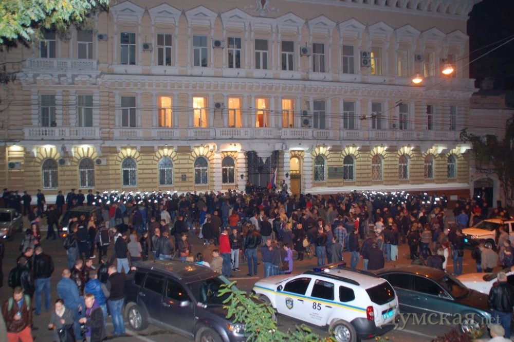 Мусоровоз фирмы «Союз», принадлежащей задержанному по подозрению в организации избиения Игорю Маркову, заблокировал выезд со двора областного управления милиция. Как передает корреспондент «Думской», сторонники Маркова пытаются не допустить вывоза своего лидера в столицу, где суд должен избрать ему меру пресечения. Один из мусоровозов перекрывает выезд со стороны Польской улицы. Главный выезд по-прежнему блокирует джип «Porsche» супруги экс-нардепа, еще один выезд на Еврейскую заблокирован внедорожником Toyota. В то же время на Еврейскую приехали уже три автобуса с правоохранителями. Они оцепили прилегающую к облУВД территорию. А к активистам «Родины» тем временем присоединяются известные личности — например, дуэлянт и наездник Валентин Дорошенко, который поднял над толпой российский флаг. СМЕРТЬ РОСІЙСЬКИМ ОКУПАНТАМ! Помітили помилку? Виділяйте слова з помилкою та натискайте control-enter Новини по цій темі: 19 лютого 2019: "Мы поняли, что государство нас не защитит": побоище 19 февраля - как это было, кто причастен и чем закончилось 25 лютого 2018: В Одессе пьяные болельщики "Карпат" напали на полицейских: пострадал патрульный, обезвредивший сталиниста Дорошенко (обновлено) 24 лютого 2018: Раненному на Новосельского полицейскому присвоили звание майора 1 лютого 2018: Арсенал «стрелка с Новосельского»: тысячи патронов, 11 видов пороха, пистолеты-пулеметы и гранаты с «довеском» |