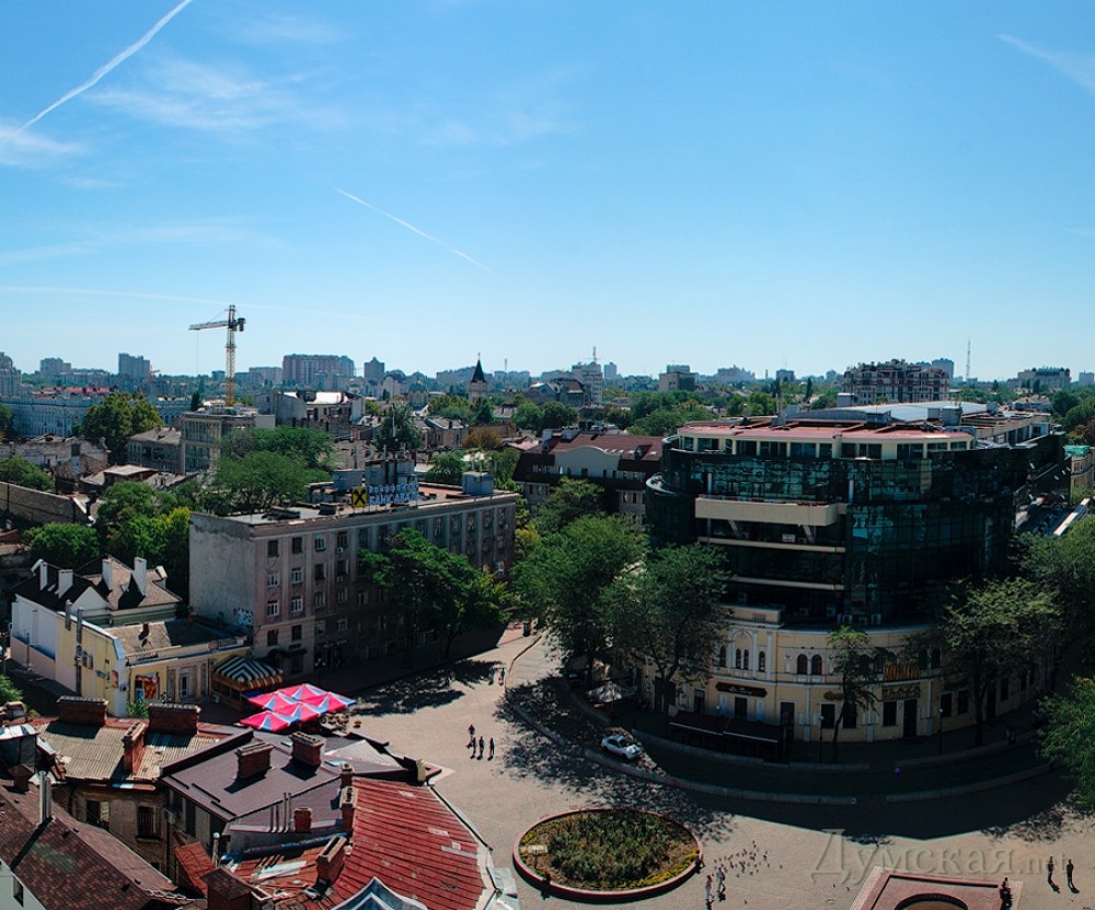 На Дерибасовской 12, помню когда благоустраивали площадку на крыше но там отгрохали реально дом — согласовывали скорее при Иеремии, при уходе Р.Б. многое тогда согласовали на скорую руку. Архиуродский шедевр. Хорошо что снизу не видать.