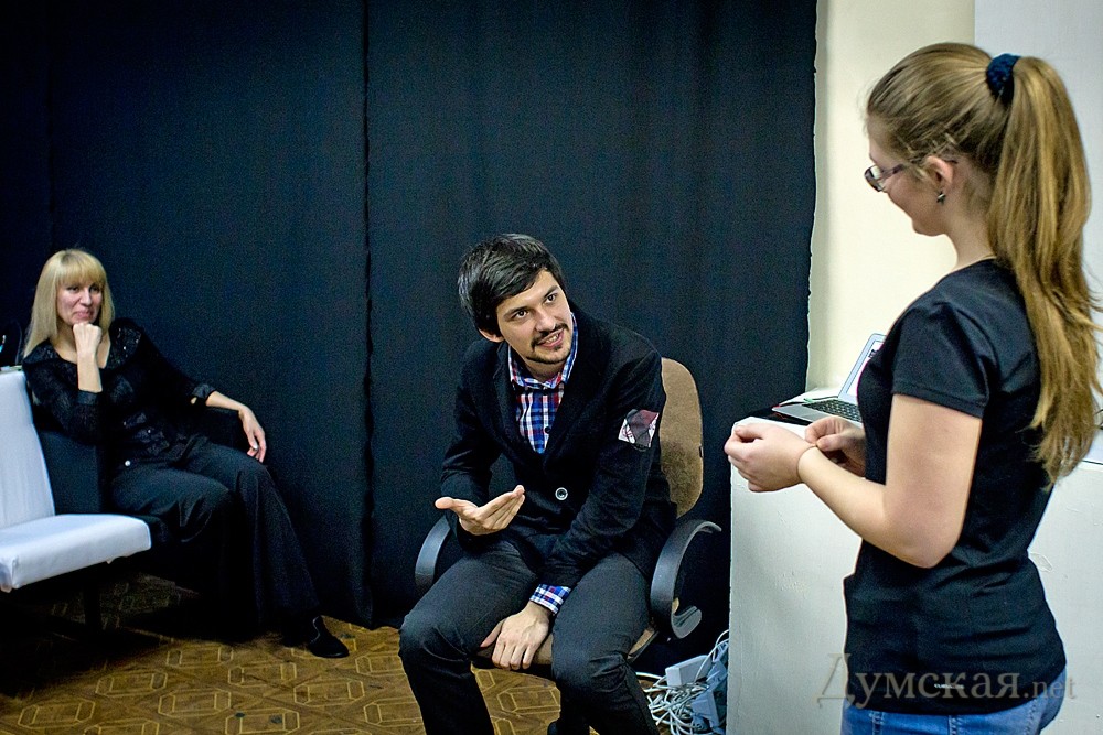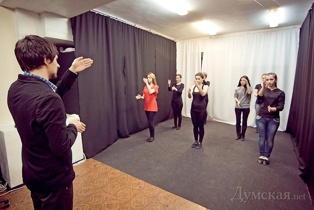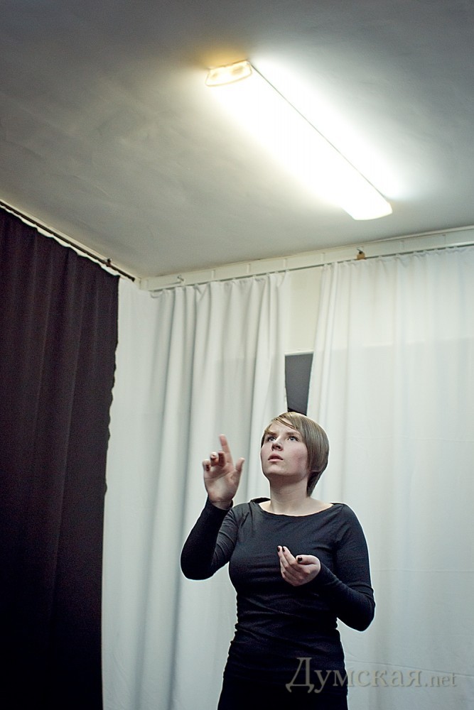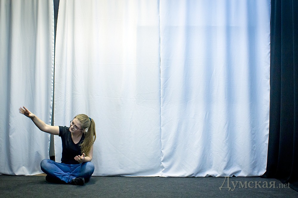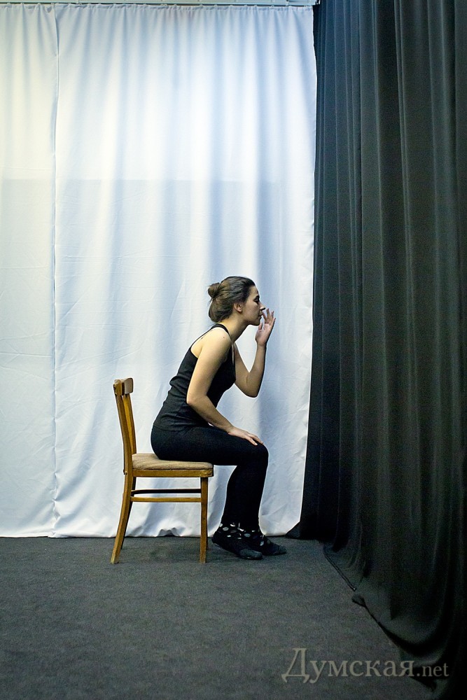 Камерный франкоязычный театр факультета романо-германской филологии Одесского национального университета имени Мечникова существует с 70-х годов. Недавно он обзавелся постоянным помещением. «Думская» побывала на репетиции. Вряд ли это помещение можно назвать театральным залом – обычная студенческая аудитория в гуманитарном корпусе ОНУ на Французском бульваре, но для коллектива студенческого театра это большая радость. Ребята делятся планами о том, что скоро Liberté заработает как самый настоящий театр и начнет рекламировать в соцсетях свои представления. Зрительских мест, правда, в новом зале немного – всего 24, так что поклонникам придется бронировать билеты заранее… «Думаем давать по три спектакля в неделю, по средам, субботам и воскресеньям. В репертуаре театра есть спектакль «Психоз» по пьесе Сары Кейн, который подготовлен студентами ОНУ, выпускниками Детской театральной школы Одессы, перформанс «Ночь» — первая работа нового состава театра. Для участия в ежегодном фестивале студенческого франкоязычного театра готовится спектакль по пьесе Жана Кокто «Равнодушный красавец». Параллельно идет работа над новым проектом, который мы пока оставим в секрете», — рассказал «Думской» режиссер театра, преподаватель Детской театральной школы Павел Кошка. «Свое первое помещение мы получили осенью прошлого года. Это бывшая аудитория, расположенная на минус первом этаже, которую студенты сами привели в порядок. Администрация и технические службы университета нам охотно в этом помогали, — добавляет руководитель театра, доцент кафедры французской филологии Татьяна Телецкая. — Есть понимание, что сцена способствует учебе». Liberté («Свобода») уже более 40 лет. Раньше театр назывался «Мирлитон» — это название группы музыкальных инструментов, представляющих собой свистульку с мембраной. У его истоков стояли преподаватели Галина Млынчик и Ольга Ханенко. В университете есть и немецкий, и английский студенческие театры, но французский – самый «старый». Старым без кавычек этот театр никак не назовешь. Актерский состав постоянно меняется. На репетиции, которую посетила «Думская», дорабатывали перформанс «Ночь», который показали в декабре прошлого года и он уже успел стать визитной карточкой коллектива. Перформанс переделывается следующим образом: режиссер добавляет к «ночным» сюжетам «дневные», девочки делают домашние заготовки, актерские этюды, сами подбирают музыку, и как раз сейчас представляют на суд учителя двухминутные миниатюры. Начинает свою пантомиму Настя Тиореско. Улыбчивая, с виду сущий ребенок, девушка сворачивается калачиком на полу, изображает пробуждение, сборы на работу, где явно приходится перекладывать горы бумажек, делая на них пометки. Возвращение домой дарит истинную радость: открывается крышка воображаемого пианино, девушка музицирует и представляет себе, как выходит на поклон к рукоплещущему залу. Очень трогательно… И все-таки Павел требует большей выразительности, нужен яркий контраст между привычным образом и занятием, которое нравится по-настоящему Далее свой вариант «двойной» жизни представляет более взрослая с виду, без детских хвостиков, зато со стильной стрижкой и строгим выражением лица артистка — Юля Капкина. Ее героиня пробуждается, едет на работу (но не в общественном транспорте, как Н
