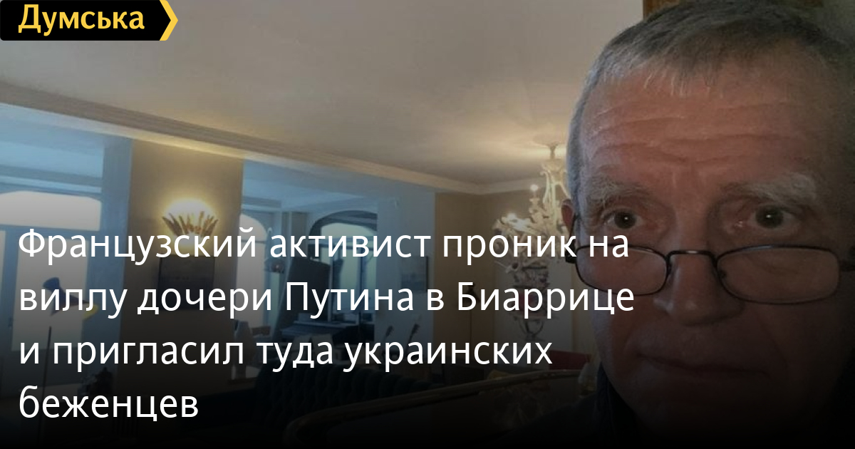 Французский активист проник на виллу дочери Путина в Биаррице и пригласил туда украинских беженцевФранцузский активист Пьер Афнер проник на виллу дочери российского президента Владимира Путина Катерины Тихоновой в Биаррице. Там он сменил в доме замки и пригласил беженцев из Украины. На вилле Тихоновой — 8 спальных мест и три ванны. Как сообщает издание The Insider, в доме активист нашел различные документы на имя прежних владельцев здания – бывшего зятя Путина Кирилла Шамалова и друга президента РФ Геннадия Тимченко. Среди прочего были найдены копия паспорта Шамалова, а также переведенный на французский язык счет оплаты за электричество по месту регистрации в Москве. Такие документы могли понадобиться для открытия банковского счета во Франции, самой покупки виллы и др. Также обнаружилась доверенность от 2009 года, выписанная «Геннадием Тимченко, гражданином Финляндии» на имя француженки Франсуаз Дюшосаль, которая должна была отвечать за ремонт на вилле. СМЕРТЬ РОСІЙСЬКИМ ОКУПАНТАМ! Помітили помилку? Виділяйте слова з помилкою та натискайте control-enter |