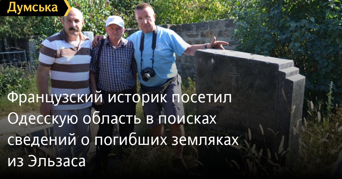 Французский историк посетил Одесскую область в поисках сведений о погибших земляках из ЭльзасаБолее 70 лет прошло с окончания Второй мировой войны, принесшей немыслимое по своим масштабам горе народам многих стран. Новое поколение знает о том страшном времени, со всеми его победами, подвигами, унижениями и предательствами лишь из учебников и рассказов очевидцев, а свидетелей тех жестоких событий, кто с болью пропустил увиденное через свою душу, сегодня остались единицы. И здоровье их уже подводит, и память, и вот бы успеть с ними встретиться, записать ценное, чего потом уже не найти нигде, потому что это ценное навсегда уходит вместе с человеком. Такую важную миссию на протяжении последних 18 лет выполняет французский историк Патрик Кауцман, проживающий в Страсбурге. На днях историк с целью сбора новой информации побывал в городе Рени Одесской области. Мы пообщались с этим необычным человеком. Как оказалось, Патрик Кауцман занимается сбором информации о погибших и пленных жителях своего региона. По словам историка, в 1942 году после оккупации Эльзаса гитлеровской Германией 130 тыс. жителей области были насильно отправлены на фронт со стороны Третьего рейха, из них 43 тысячи не вернулись домой. В числе отправленных на фронт был и отец Патрика, которому довелось воевать на территории Черкасской, Днепропетровской и Курской областей, а также побывать в концлагере для военнопленных на территории России. Мужчина остался жив, но несправедливость, проявленная со стороны оккупантов, возмутила в последующем его сына – вот почему теперь Патрик занимается сбором информации о погибших земляках. За этот достаточно продолжительный период ему удалось из двух тысяч имен воскресить память о 150 погибших жителях Эльзаса. Сбор информации француз ведет за собственные средства. В дальнейшем он планирует издать книгу, в основу которой, помимо документов, войдут воспоминания родственников погибших, а также очевидцев событий военных лет. В этом году историк побывал в Бессарабии: Румынии, Молдове и Украине. В Рени он в первую очередь посетил памятник, установленный в мае 2008 года на месте братских захоронений заключенных приемно-пересыльного лагеря №38 НКВД СССР. Лагерь существовал с сентября 1944 по декабрь 1947 года, за этот период через него прошли порядка 4 тысячи военнопленных из одиннадцати стран Европы, воевавших на стороне нацистской Германии. Весной 1945 года в лагере одна за другой произошли две вспышки брюшного тифа, в результате которых скончались 1714 человек. Известно, что опасный недуг в Рени завезли больные заключенные, транспортированные из румынского города Калафат. Сейчас на месте захоронений скончавшихся от тифа заключенных размещена солнечная электростанция. Во время ее строительства памятник был перенесен метров на сто в сторону. Местный краевед Михаил Салабаш отметил, что умершие во время эпидемии были захоронены в пяти братских могилах (одна из них находится в стороне от станции). Условия в лагере были сложные (тем более, если учесть, что время его функционирования частично совпало с голодовкой 1946-1947 годов), поэтому узники здесь умирали нередко. Михаил Салабаш рассказал, что в Рени имелось и кладбище, на котором были захоронены 226 человек, но, к сожалению, места его нахождения краеведы установить пока не смогли. Патрик Кауцман возле 