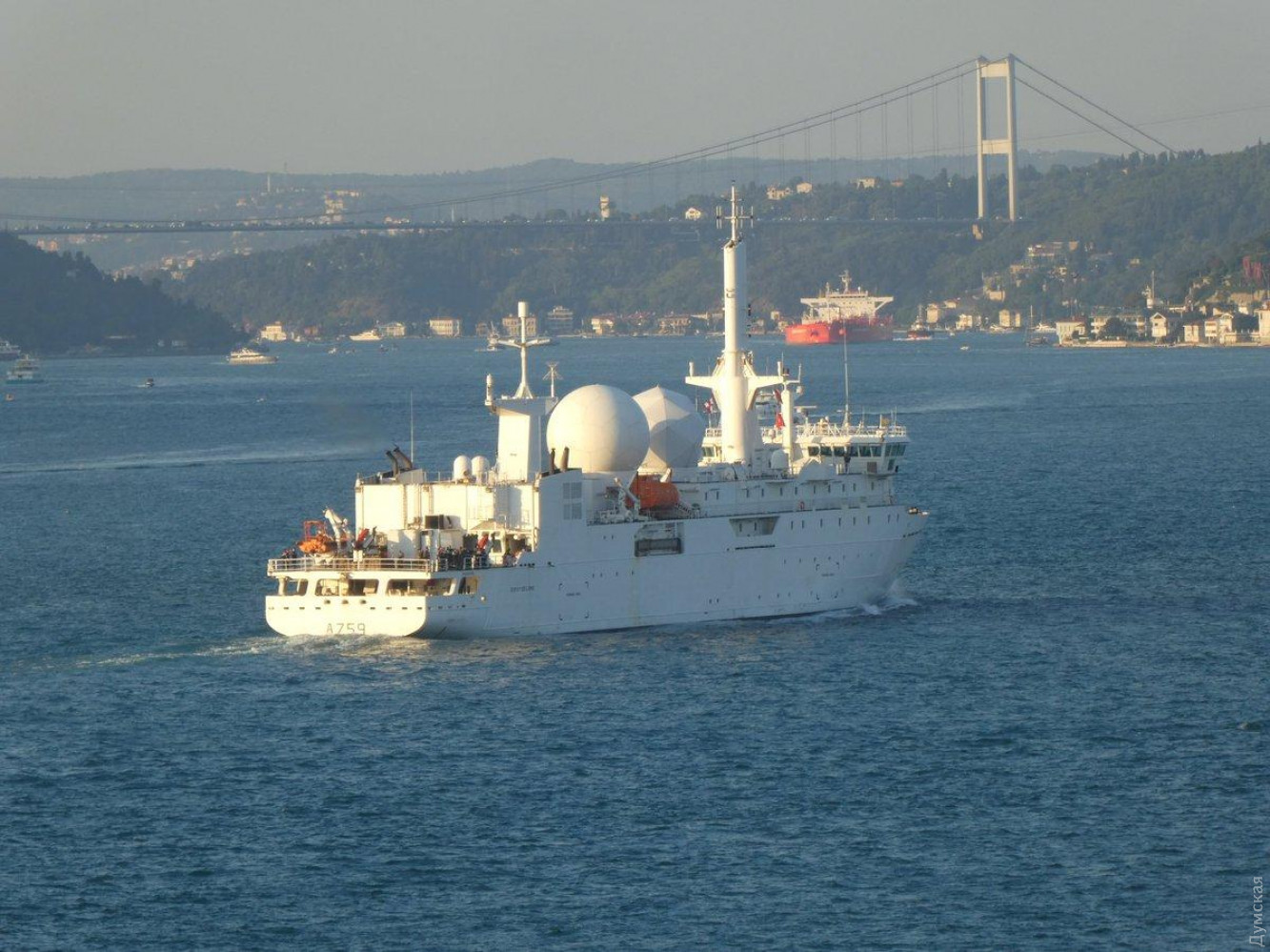 Сегодня вечером французский разведывательный корабль A-759 Dupuy de Lome («Дюпьи де Лом») прошел пролив Босфор и вошел в Черное море. Это четырнадцатый заход корабля НАТО в Черноморский регион в этом году. «Дюпьи де Лом» достаточно часто заходит для разведывательных миссий, впервые он прошел Босфор в 2006 году, зайдя в наш порт для отдыха. В следующий раз судно зашло в Черное море в 2010 году, а в 2014 отметилось тут 7 раз! В 2015 и 2019 годах A759 также проводил радиотехническую разведку. Судно вошло в состав ВМС Франции в июне 2006 года. Длина 102 метра, ширина 16, осадка 5 метров, водоизмещение 3600 тонн, экипаж 110 человек. Оснащен разнообразной аппаратурой для ведения радиотехнической разведки, в том числе для перехвата переговоров по мобильной связи. СМЕРТЬ РОСІЙСЬКИМ ОКУПАНТАМ! Помітили помилку? Виділяйте слова з помилкою та натискайте control-enter |