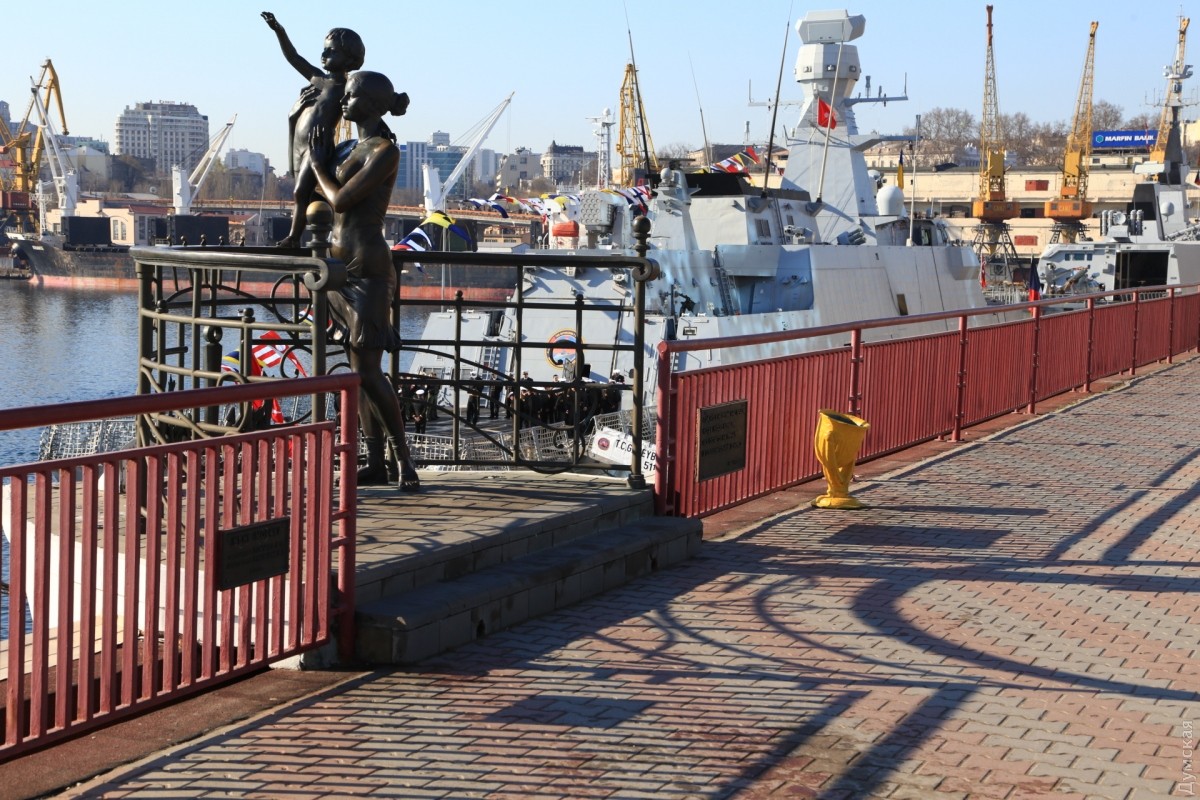 Сегодня утром два турецких корабля зашли в одесский порт. Первым на горизонте появился новейший корвет TCG Heybeliada. Как сообщает корреспондент «Думской», швартовка продолжалась около получаса, так как корвет решили поставить между фрегатом Ла Файетт и грузовиком, стоящим у 16 причала. Около 8:30 был спущен трап. Для приема турецкого фрегата французский Ла Файетт должен был освободить место у 15 причала. Примерно около 9 часов французы начали отчаливание и через 30 минут вышли на траверз Воронцовского маяка. «Газинтеп» к тому времени появился на горизонте и оба фрегата разошлись на дистанции в пару миль. Еще через час он был пришвартован на месте Ла Файетта. По предварительной информации, турецкие корабли пробудут в Одессе до 7 апреля. Позднее появится информация о том, в какие дни они будут открыты для посетителей. Фото Сергея Смоленцева