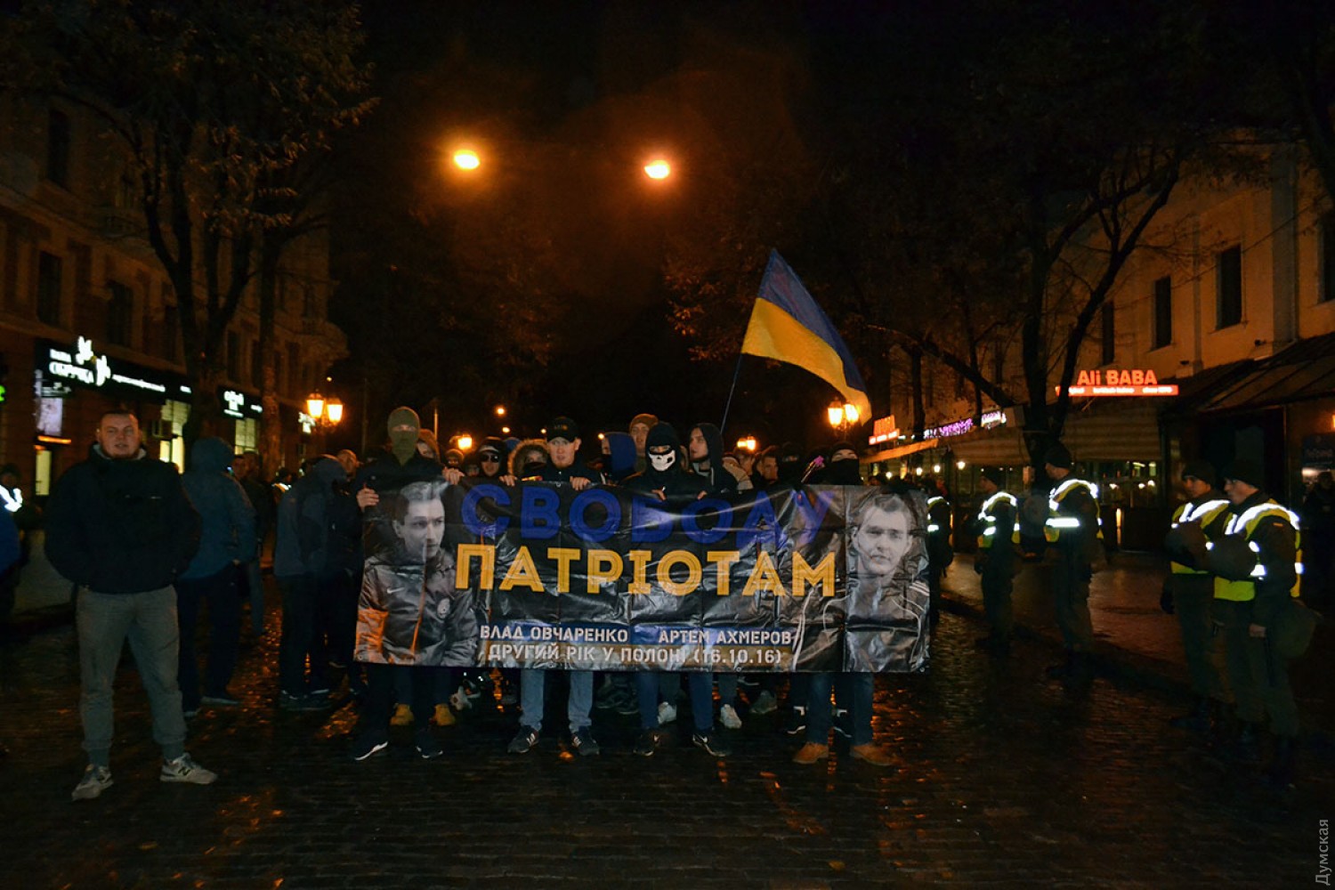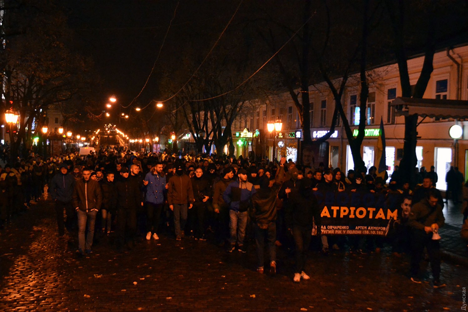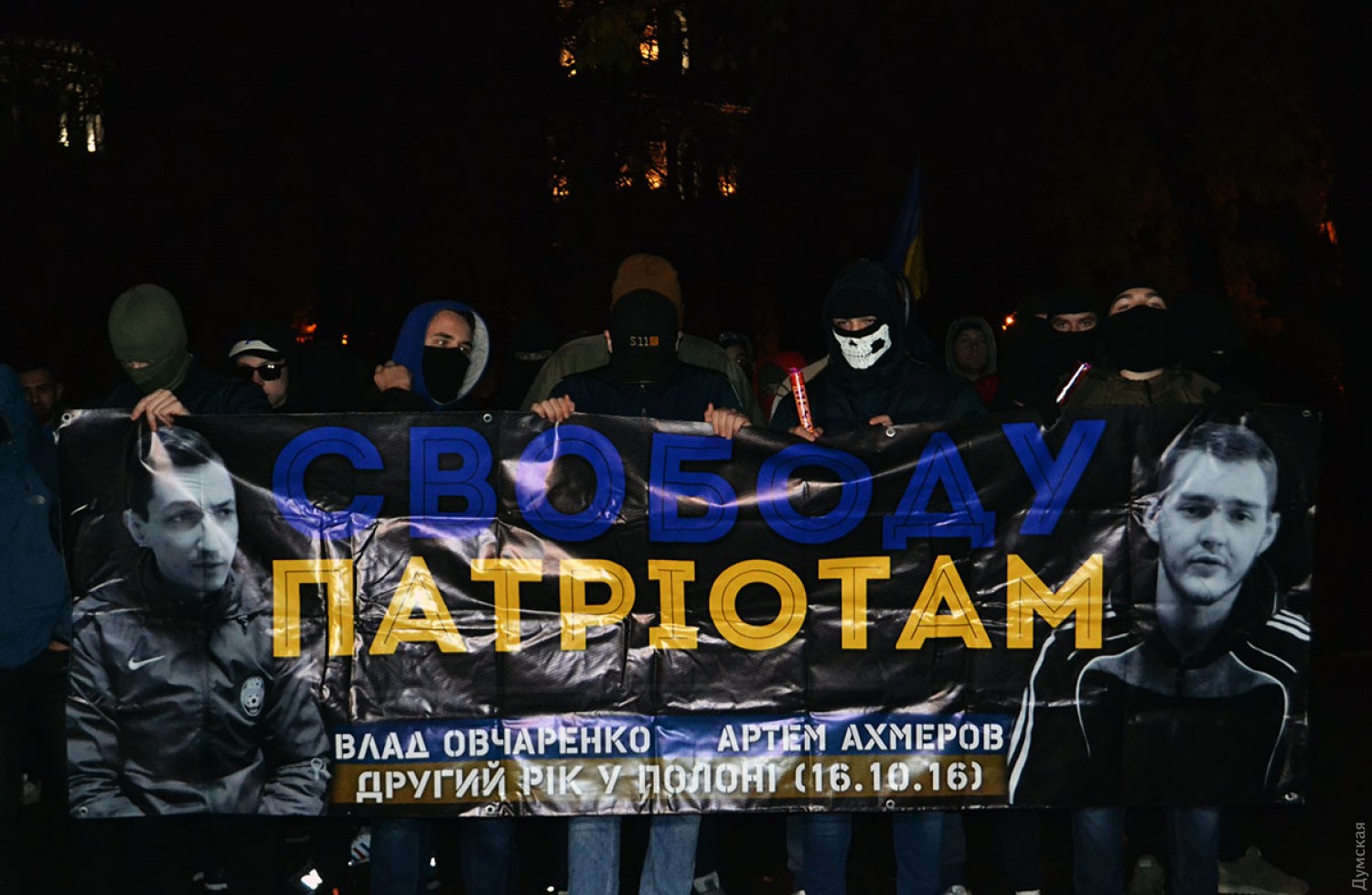 Футбольные фанаты прошли маршем по центру Одессы с требованием освободить патриотов, плененных террористамиПеред сегодняшним матчем «Черноморец»- «Олимпик»(Донецк) около 200 активистов патриотических организаций устроили марш в центре Одессы против террористических формирований «ЛНР» и «ДНР». Как передает корреспондент «Думской», участники шествия требовали от властей предпринять меры по освобождению жителей Луганска Влада Овчаренко и Артема Ахмерова, которых террористы посадили за решетку. «Этот марш посвящен двум луганским патриотам Ахмерову и Овчаренко, которые не предали свою родину и остаются верными Украине, — рассказывает координатор движения «С14» Сергей Мазур. — Около двух лет назад они попали в плен несуществующего государства «ЛНР» за то, что сожгли их флаг, и с тех пор они находятся в плену». В ходе марша его участники скандировали «Свободу политзаключенным!», «Свободу заключенным Кремля!», «Восток и Запад вместе», «Крым – Украина, Донецк — Украина, Луганск – Украина», «Свободу – Овчаренко», «Свободу Ахмерову», «Смерть Кремлю – мир Донбассу», а также стандартные кричали ультрас. На Строгановском мосту фанаты зажгли файеры и дымовые шашки, а у памятника Шевченко в одноименном парке — спели гимн Украины. Только после этого участники марша пошли на футбольный матч (в котором, к слову, «Черноморец» победил). Фото, видео — Андрей Колисниченко СМЕРТЬ РОСІЙСЬКИМ ОКУПАНТАМ! Помітили помилку? Виділяйте слова з помилкою та натискайте control-enter |