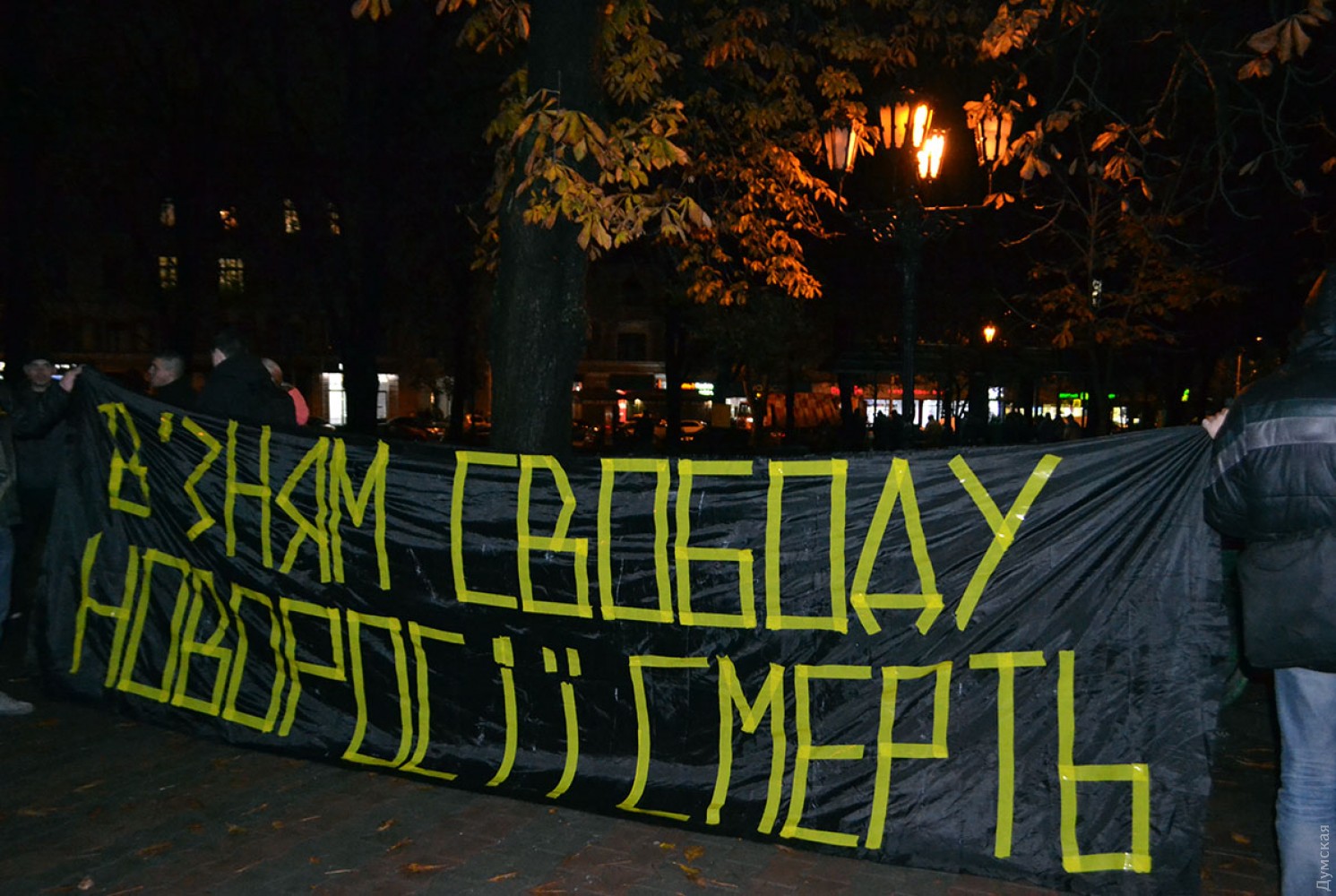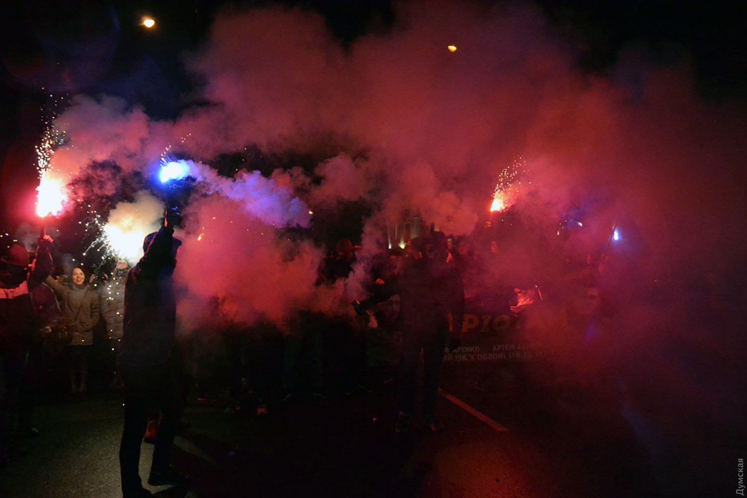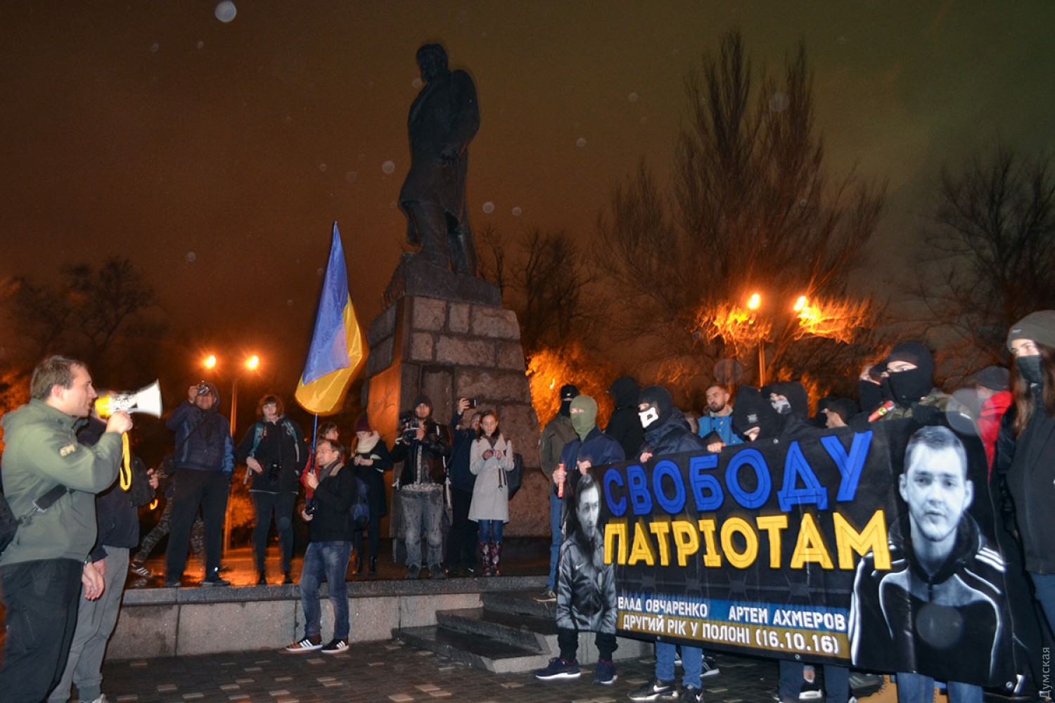 Футбольные фанаты прошли маршем по центру Одессы с требованием освободить патриотов, плененных террористамиПеред сегодняшним матчем «Черноморец»- «Олимпик»(Донецк) около 200 активистов патриотических организаций устроили марш в центре Одессы против террористических формирований «ЛНР» и «ДНР». Как передает корреспондент «Думской», участники шествия требовали от властей предпринять меры по освобождению жителей Луганска Влада Овчаренко и Артема Ахмерова, которых террористы посадили за решетку. «Этот марш посвящен двум луганским патриотам Ахмерову и Овчаренко, которые не предали свою родину и остаются верными Украине, — рассказывает координатор движения «С14» Сергей Мазур. — Около двух лет назад они попали в плен несуществующего государства «ЛНР» за то, что сожгли их флаг, и с тех пор они находятся в плену». В ходе марша его участники скандировали «Свободу политзаключенным!», «Свободу заключенным Кремля!», «Восток и Запад вместе», «Крым – Украина, Донецк — Украина, Луганск – Украина», «Свободу – Овчаренко», «Свободу Ахмерову», «Смерть Кремлю – мир Донбассу», а также стандартные кричали ультрас. На Строгановском мосту фанаты зажгли файеры и дымовые шашки, а у памятника Шевченко в одноименном парке — спели гимн Украины. Только после этого участники марша пошли на футбольный матч (в котором, к слову, «Черноморец» победил). Фото, видео — Андрей Колисниченко СМЕРТЬ РОСІЙСЬКИМ ОКУПАНТАМ! Помітили помилку? Виділяйте слова з помилкою та натискайте control-enter |