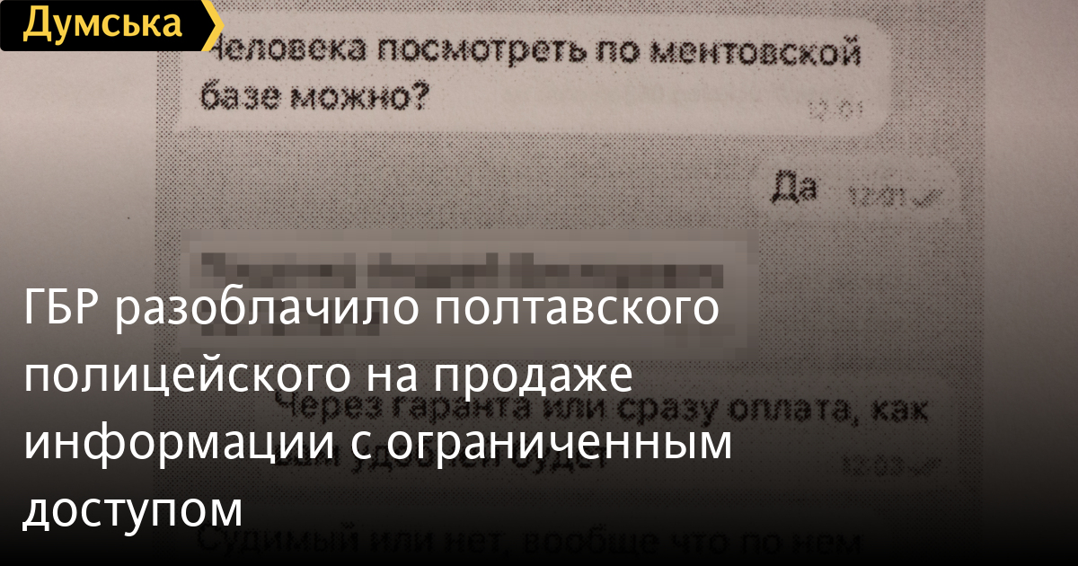 ГБР разоблачило полтавского полицейского на продаже информации с ограниченным доступомСледователи ГБР разоблачили сотрудника полиции Полтавской области на продаже информации с ограниченным доступом, которая хранится в базах и системах Нацполиции и МВД. Об этом сообщила пресс-служба ГБР. В ходе расследования было установлено, что к продаже информации причастен сотрудник Кременчуцкого ОП в Полтавской области и его сообщник из гражданских. По предварительному сговору товарищ полицейского под псевдонимом «Джордж Буш» размещал объявления о возможности получения информации с закрытым доступом в группах соцсетей. А правоохранитель, пользуясь своим служебным положением, копировал и сбывал нужные сведения. 7 декабря обвинительные материалы на гражданское лицо были направлены в суд, а полицейскому сообщили о завершении досудебного расследования и открыли материалы уголовного производства для ознакомления. За содеянное ему грозит лишение свободы на срок до шести лет с лишением права занимать определенные должности или заниматься определенной деятельностью на срок до трех лет. СМЕРТЬ РОССИЙСКИМ ОККУПАНТАМ! Заметили ошибку? Выделяйте слова с ошибкой и нажимайте control-enter |