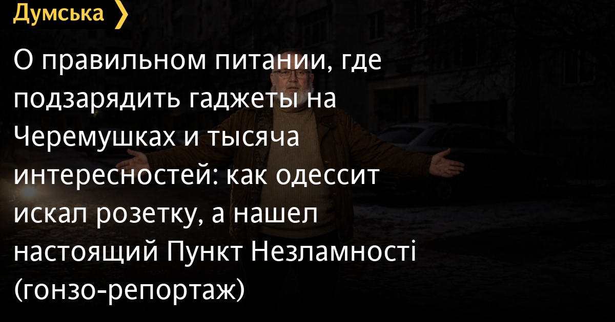 О правильном питании, где подзарядить гаджеты на Черемушках и тысяча интересностей: как одессит искал розетку, а нашел настоящий Пункт Незламності (гонзо-репортаж)Наш штатный гонзо-репортер Дмитрий Жогов, кажется, чаше всех в редакции посещает пункти Незламності. Где он только ни был!!! Кто хочет знать, читайте тут, тут и тут. «Да тебе в пору уже Мишленовские звезды раздавать», — шутили мы. Ну что, дошутились, Дима засобирался. Пора освежить карту, так сказать. В этот раз выбрал точку поближе к дому. Говорит, немного волновался, ведь дозвониться туда никак не мог. Пошел буквальноь на удачу ине прогадал: искал место, где бы подзарядить гаджеты, а нашел настоящий ПУНКТ НЕЗЛАМНОСТІ, место силы, где можно и себя любимого позитивом подпитать. Давеча возле «Малины» вижу — идут. Трое. Мускулистые. Высоченные. В жилетках ДТЭК. Па-да-да-дааа… С нарастанием, как на лестнице, когда Рокки, закхеканный, бежал, так и мы в блэкаут, на 14 этаж. Народ восхищенно варежки пооткрывал. Что за львы, наши тигры! Я тоже восхищаюсь парнями из ДТЭК, знаю, как всех нас они спасают, знаю, как по ним орки лупят, но все же полюбовался и жене говорю: надо бежать заряжать гаджеты. Если они появились на районе, да еще такой бригадой — точно свет пропадет. Ремонтно-аварийные работы. А у нас славные пять дней со светом были. Беспрепятственно душ принимали. Нагло стирались. И я даже в «Зомби против Растений» сыграл. Ну мы и помчались. Я как в воду глядел. Свет тотчас погас. Говорят, фаза полетела. В домовом чате народ колбасится. Призывает улицы перекрывать, настучать на соседей, у которых свет есть. Но я знаю, что это до фени. Поэтому гаджеты в сумку — и потопал в Пункт Незламности. Но в этот раз пошел не в «Таврию» — не хочу стоять три часа на входе. И не на вокзал (далеко), а в Гончаренко Центр. Вот не хотелось мне туда идти. Не знаю почему. Может, то, что у каждого из нас сидит червячок сомнения: когда идешь к депутату, он тебя окучивать начнет. В руки проспекты совать с Петром Порошенко. Авоськи с картошкой. Но обошлось. Самого Алексея видел в ютьюбе — он говорил: «Добро пожаловать, бесплатный чай и заряжайся не хочу». И на видео я увидел, что люди сидят на стульях. Это хорошо. Но на всякий случай позвонил узнать в Центр: можно ли прийти? Отхватить чуток незламности. Но трубку никто не взял. Два раза звонил. И нифига. Не люблю я этого. Придешь — а тебе скажут: а у нас сегодня переучет. Или карантин по гриппу. Сандень. Ушли на базу. Я человек советской закалки. И привык к тому, что нашу жизнь могут усложнить по максимуму на ровном месте. Знакомые сказали: подойдешь к Дому мебели, а потом увидишь многоэтажку с птицами. Или с рыбами. Что-то такое там. А мороз покалывает. Я один раз станцевал на гололеде — чуть не убился. Валентина-фотографесса за шиворот в падении меня поймала. И каждый раз по прогнозу показывает, что сегодня САМЫЙ ХОЛОДНЫЙ ДЕНЬ В ГОДУ — минус десять, а на завтра будет тепло, а в четверг вообще плюсовая. А на самом деле завтра, бляха-муха, еще холоднее. Но вот послезавтра, честно-честно, будет совсем тепло! Бодро вещают синоптики. Значит — совсем завьюжит. И эти минус десять совсем никак не минус десять выглядят. А минус двадцать. Зато на дорогу малышни с санками вылезло — уйма. Я уже думал, что санки я в деле не увижу. Ан нет. Мы немного поплутали. Попали в шиномонтаж. Там мужик лицо об стекло при