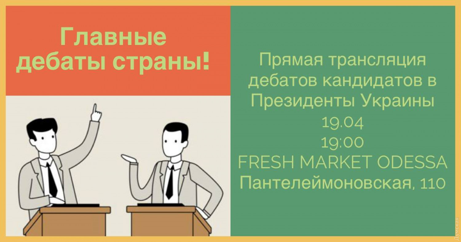 Возможность посмотреть дебаты кандидатов на большом экране, запивая политику пивом, предлагают уже три топовых одесских заведения: «Городской рынок еды», Fresh Market и паб Corvin. По нашим данным, к ним должны присоединиться и другие бары-рестораны.