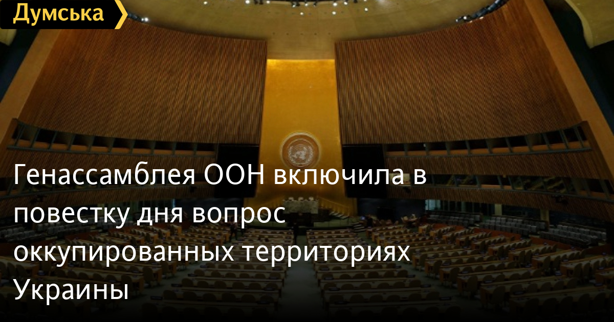 Генассамблея ООН включила в повестку дня вопрос оккупированных территориях УкраиныГенеральной ассамблеей ООН включила вопрос о временно оккупированных территориях Украины в повестку дня своей сессии. Об этом сообщили в Министерстве иностранных дел Украины. «Мы приветствуем сегодняшнее решение Генассамблеи ООН о включении пункта о временно оккупированных территориях Украины в повестку дня 76-й сессии. С нетерпением ждем предметного обсуждения способов привлечения России к ответственности за нарушения территориальной целостности Украины и Устава ООН», — отмечается в информации Ранее пресс-секретарь главы украинского государства Сергей Никифоров сообщил, что президент Украины Владимир Зеленский в понедельник, 20 сентября, отправится в США, где примет участие Генассамблее ООН. Программой предусмотрены встречи украинского президента в том числе и с генеральным секретарем ООН, а также с главами государств и представителями других международных организаций. СМЕРТЬ РОССИЙСКИМ ОККУПАНТАМ! Заметили ошибку? Выделяйте слова с ошибкой и нажимайте control-enter |