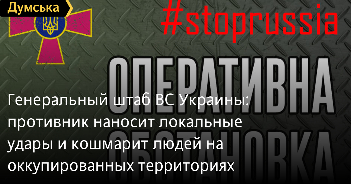 Генеральный штаб ВС Украины: противник наносит локальные удары и кошмарит людей на оккупированных территорияхГенеральный штаб Вооруженных сил Украины обнародовал сводку о ситуации на фронтах по состоянию на 18:00 среды, 27 апреля 2022 года. Идут 63 сутки героического противостояния украинского народа полномасштабному российскому вторжению. Враг продолжает наступательные действия в восточной оперативной зоне, добиваясь установления полного контроля над территорией Донецкой и Луганской областей, а также создания сухопутного коридора с оккупированным Крымом. На волынском, полесском и северском направлениях ситуация не претерпела значительных изменений, украинская разведка не обнаружила признаков формирования противником наступательных групп. На слобожанском направлении враг продолжает систематические артиллерийские обстрелы, в том числе из реактивных систем. Ударам подвергаются города Харьков и Дергачи, а также населенный пункт Прудянка. В направлении Изюм-Барвенково оккупанты предприняли попытку наступления в районе Новой Дмитровки. Успеха не достигли, понесли потери и откатились. На донецком и таврическом направлениях враг продолжает обстрелы позиций украинских войск вдоль линии соприкосновения из минометов и ствольной артиллерии. Также противник предпринял неудачную попытку прорвать оборону украинских войск в районе Курахово. На южнобужском направлении подразделения оккупационных войск под прикрытием огня артиллерии продолжают инженерное оборудование позиций, пополняют запасы, проводят воздушную разведку. Оккупанты пытаются улучшить тактическое положение своих войск в направлении Запорожья. Успеха не достигли, с потерями отошли. На временно захваченной территории Харьковской области, в районе поселка Левковка Изюмского района, противник организовал пункт сбора поврежденной техники, где осуществляется ремонт и восстановление боевых машин. Российские захватчики продолжают проводить так называемые «фильтрационные мероприятия» в отдельных населенных пунктах, которые временно неподконтрольны украинской власти. На оккупированной территории Запорожской области российские нацисты осматривают дома местных жителей, чтобы определить места проживания представителей силовых структур Украины. Они составляют списки местного населения, передвижение по временно захваченной территории без документов запрещено. На оккупированной территории Херсонской области оккупанты проводят подготовку к так называемому «референдуму», печатаются бюллетени, уточняются личные данные местных жителей. При этом россияне продолжают ограничивать выезд граждан Украины за пределы захваченной территории. В Приднестровском регионе Республики Молдова в связи с многочисленными провокациями со стороны России введен «красный» уровень террористической угрозы. Личный состав силовых структур непризнанной республики переведен на казарменное положение, усилен контроль на блокпостах, отменена подготовка к проведению праздничного парада 9 мая. Враг деморализован. У личного состава, который свозят для восполнения потерь с оккупированных территорий Донецкой и Луганской областей, изымают личные документы, позволяющие идентифицировать этих лиц в случае смерти. Участились случаи поиска военнослужащими врага новых способо