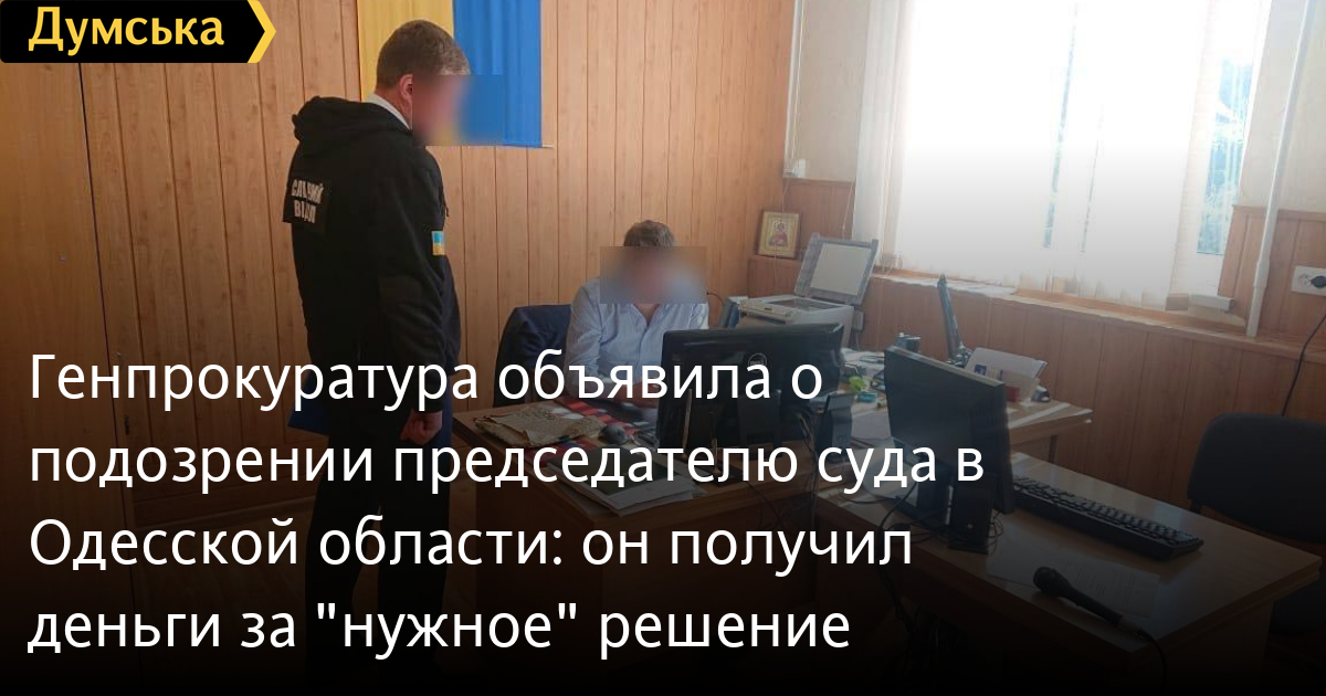 Генпрокуратура объявила о подозрении председателю суда в Одесской области: он получил деньги за «нужное» решениеГенпрокуратура объявила о подозрении в мошенничестве председателю одного из районных судов Одесской области. Как сообщили в пресс-службе управления СБУ Одесской области, оперативники спецслужбы установили, что глава райсуда за 6 тысяч долларов обещал жителю временно оккупированной территории Донецкой области повлиять на решение другого суда по гражданскому делу. В качестве одного основания для судебного разбирательства истец использовал «доверенность», выданную нотариусом так называемой «ДНР». Вскоре суд принял «нужное» решение о выплате истцу 30 тысяч американских долларов другим участником судебного процесса — бизнесменом из Одесской области. Правоохранители задокументировали, что председатель райсуда привлек к противоправной деятельности в качестве посредника свою мать, в доме которой во время санкционированных следственных действий правоохранители обнаружили всю сумму взятки. По материалам СБУ, заместитель Генерального прокурора Украины объявил председателю районного суда о подозрении в совершении преступления по ч. 2 ст. 190 Уголовного кодекса Украины (мошенничество). Продолжается расследование. По нашим данным, речь идет о главе Овидиопольского суда Павле Кириченко. Следственные действия по этому делу проходили в сентябре, о чем писала «Думская». Тогда же источник в прокуратуре говорил, что деньги, полученные Кириченко, предназначались его коллеге — председателю Ильичевского городского суда, где и рассматривалось дело. Однако доказательств вины последнего, очевидно, найти не удалось, поэтому Кириченко привлекается один и только за мошенничество. СМЕРТЬ РОСІЙСЬКИМ ОКУПАНТАМ! Помітили помилку? Виділяйте слова з помилкою та натискайте control-enter Новини по цій темі: 15 липня 2025: Вимагала 400 євро за підробку документів для пенсії: в Одеській області чиновниця попалася на хабарі (фото, відео) 27 червня 2025: За 40 тис. грн хотів купити секретні розробки: в Одесі затримали співробітника приватної фірми 6 червня 2025: Вимагав три тисячі доларів за довідку про інвалідність: в Одесі затримали головлікаря лікарні (фото) 8 травня 2025: Обіцяли оформити програмістом в комунальне підприємство: в Одеській області викрили схему ухилення від армії |