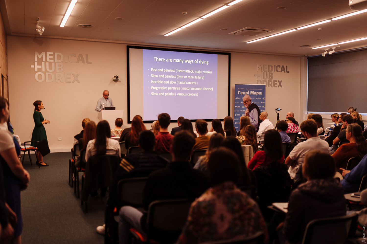 Легендарный нейрохирург Генри Марш прочел лекции и принял участие в операции в Медицинском доме OdrexВсемирно известный нейрохирург из Великобритании Генри Марш посетил Одессу. Он был консультирующим хирургом во время операции в Медицинском доме Odrex, вел прием пациентов, а также прочел познавательные лекции. «Приезды господина Марша — знаковые события не только для нашего города, но и для Украины в целом. Потому что он, конечно же, великий человек, великий врач, благотворитель и более 20 лет он помогает украинской медицине, украинским хирургам повышать свою квалификацию, свой профессионализм и приблизиться к тем стандартам, которые действуют в современном медицинском мире, в британской медицине. Это тот человек, который двигает медицинскую науку вперед», — отметил генеральный директор Медицинского дома Odrex Тигран Арутюнян. Многие из тех, кто пришел на лекции Генри Марша, уже читали книги всемирно известного нейрохирурга и теперь хотят познакомиться с ним лично. «Мне когда-то подруга на день рождения подарила книгу Генри Марша. Я прочитала, естественно, и меня заинтересовала, и меня сам Генри Марш заинтересовал. Мне захотелось послушать такого выдающегося человека», — рассказала слушательница лекции Ольга Блажевич. «Я восхищаюсь им. Генри Марш – великий человек, его книги безумно интересны. Потому что человек великий. И его книги – они очень безумно интересны и полезны для студентов», — говорит слушательница лекции Екатерина Тарасова. Первая лекция была посвящена эвтаназии. Эта тема вызывает множество дискуссий во всем мире, в том числе и на тему медицинской этики. Генри Марш считает, что у человека должно быть право самому сделать выбор между жизнью и смертью. «В тех странах, где прекращение жизни с врачебной помощью уже разрешено по закону, мы не видим доказательств того, что это «скользкий путь». Я лично не понимаю, почему вдруг разрешение на смерть с врачебной помощью должно превратить врачей в убийц или почему пациенты при этом должны относиться к врачам, как к убийцам», — отметил Генри Марш. «Тема лекции достаточно актуальна, на слуху. Эта проблема в Украине абсолютно никак не решается», — отметил нейрохирург Медицинского дома Odrex Геннадий Струц. Эвтаназия разрешена в Бельгии, Швейцарии, Нидерландах, Люксембурге, а также в нескольких американских штатах. Для того, чтобы человек мог добровольно уйти из жизни, неизлечимый диагноз должны подтвердить два независимых специалиста. «Очень важно, чтобы это был свободный и осознанный выбор человека, который находится в здравом рассудке. Поэтому эвтаназия не применима к людям, находящимся в коме», — отметил Генри Марш. После часовой лекции все желающие могли приобрести книги Генри Марша, переведенные на украинский язык, получить автограф, и сфотографироваться на память с легендарным врачом. Кроме того, доктор Генри Марш провел бесплатные консультации для пациентов с заболеваниями нервной системы. Во второй лекционный день Генри Марш говорил об умении хирурга расставлять приоритеты в своей работе, не бояться своих эмоций во время проведения серьезных оперативных вмешательств, и вместе с тем, взвешенно подходить к выбору лечения пациента. «Когда вы полностью спокойны во время операции, вы не будете достаточно осторожными. Есть очень известный американский летчик-испытат