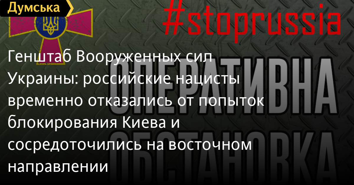 Генштаб Вооруженных сил Украины: российские нацисты временно отказались от попыток блокирования Киева и сосредоточились на восточном направлении
