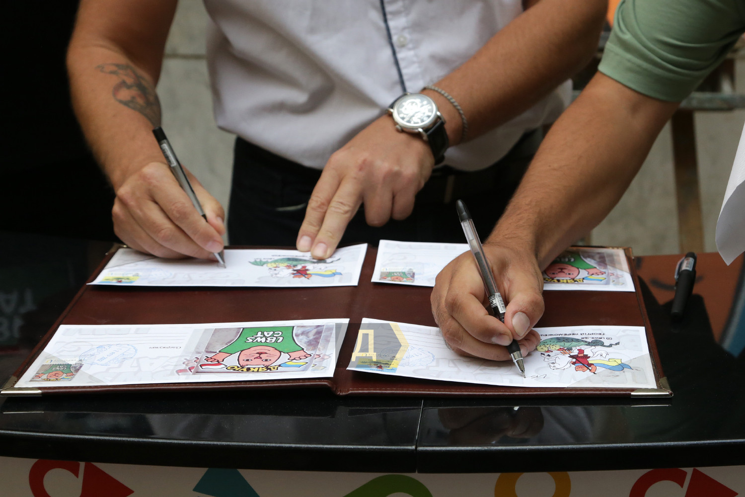 «Кожен малюнок був ретельно вивірений, це довга праця – придумати фрагмент, знайти місце та намалювати. В мене є кілька улюблених – це «Георгій Переможець», «Кіт Азовсталь» та «Борщ наш», які, судячи з реакції росіян, потрапили точно в ціль. Два фрагменти надруковані в марках і на поштових конвертах», — наголосив Ігор.