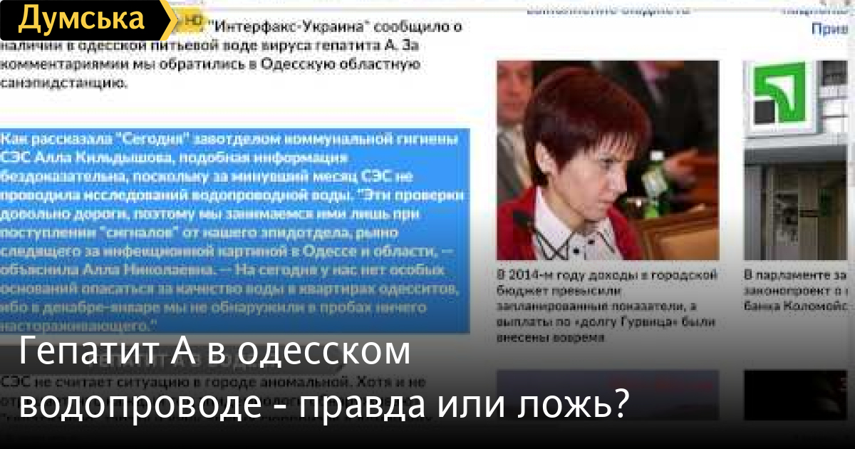 Гепатит А в одесском водопроводе. Такую информацию сегодня одесситы получили из самых разных источников. Но Думская.ТВ требует только факты. Грозит ли одесситам гепатит А, она же болезнь Боткина? Журналистское расследование провела Анастасия Большедворова