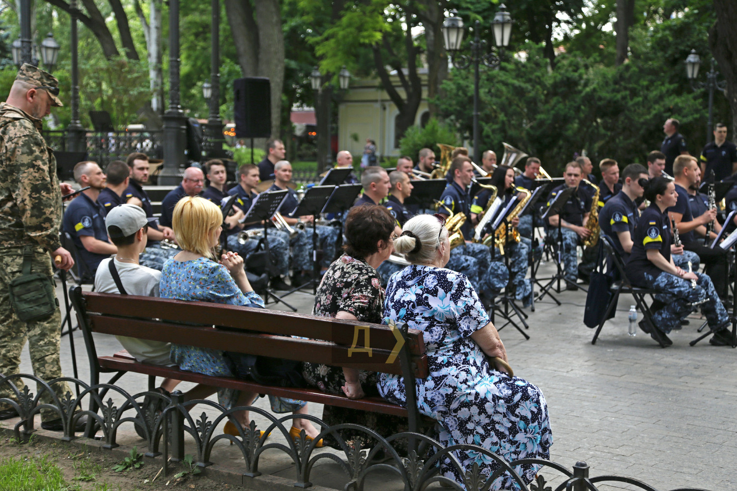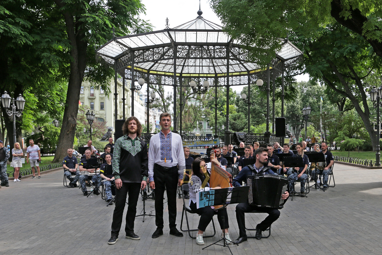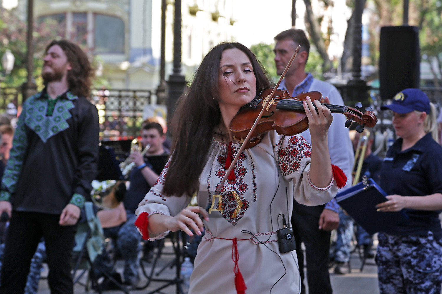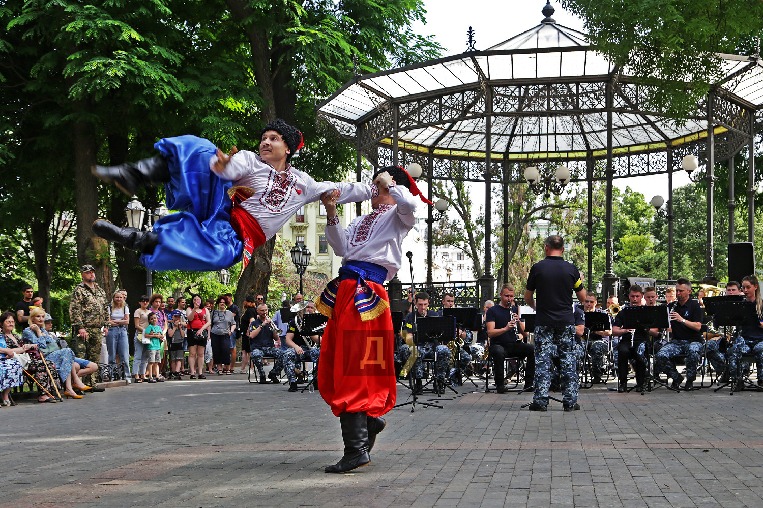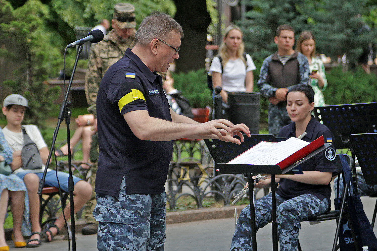 В субботу вечером в одесском Горсаду было шумно — оркестр Военно-морских Сил Украины дал концерт для нескольких сотен одесситов и гостей нашего города. В середине марта этого года для поднятия духа жителей Одессы в Военно-морских Силах стартовала акция «Поддержи своих», а сегодня военный оркестр совместно с вокальной группой «Хвиля» решил поделиться с одесситами теплом своих сердец, улыбками и хорошим настроением. Двухчасовой концерт начался с гимна Украины, затем прозвучали военно-патриотические композиции, народные, фольклорные, попурри из одесских песен и танцевальные композиции Центра военно-музыкального искусства ВМСУ. А «гвоздем» программы стало исполнение оркестром всемирно известного хита украинской группы Kalush Orchestra — Stefania. Примечательно, что сегодня была премьера исполнения оркестром этой песни, а идея родилась минувшей ночью. «Сегодня в Одессе был экспромт — ночью, перед выездом, мы отрепетировали один раз, вокальная группа не знала об этом, балет поддержал нас в процессе выступления, но у нас получилось, значит тема действительно народная» — отметил начальник Центра военно-музыкального искусства ВМС Украины, дирижер Любомир Сукенник. Скрипачка София Осадчая пленила всех зажигательными ритмами, а заслуженный артист Украины Александр Дмитриев покорил зрителей украинским фольклором. Стоит отметить, что оркестр ВМСУ делает большую и очень важную работу для наших Сил обороны. «У нас каждый день концерты, мы работаем для наших военных в полях. А сегодня мы дали концерт для одесситов и гостей города. Программа выбирается очень просто – мы исполняем то, что болит, что накипело, ведь нельзя постоянно сидеть и плакать, но для того, чтобы поддерживать себя, надо, конечно, шутить, смеяться, танцевать, по-другому, мы не выживем. Так и рождается программа», — отметил Любомир Сукенник. Фото Сергея Смоленцева Помітили помилку? Виділяйте слова з помилкою та натискайте control-enter |