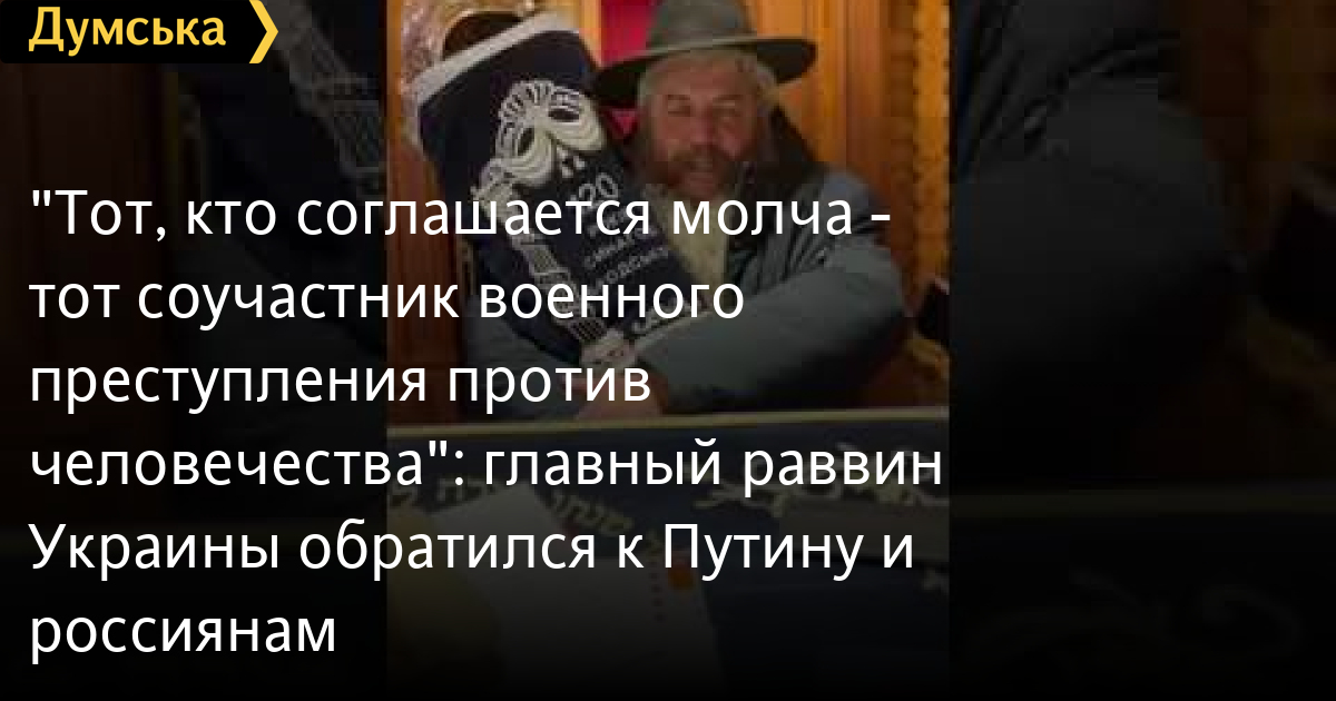 «Тот, кто соглашается молча — тот соучастник военного преступления против человечества»: главный раввин Украины обратился к Путину и россиянамГлавный раввин Киева и Украины Моше Реувен Асман записал видеообращение к Путину и всем россиянам, и пообещал проклясть тех, кто молча соучаствует в этом преступлении. «Я родился в городе-герое Ленинграде, мой отец 12-летним мальчиком прошел все ужасы блокады и рассказывал мне про ужасы голода, ужасы бомбежек. Мои многие родственники пали на фронтах Второй мировой войны. Мои дяди и тети в партизанских отрядах в белорусских лесах били фашистов. Я обращаюсь к раввинам России, к евреям, к русским: «Люди, остановите войну». Не смотрите, что вам говорят по телевидению, вам врут, здесь происходят военные преступления. Российская армия, которая била фашистов в 41-м, сегодня бомбит мирное население Киева, Харькова, бомбит Одессу. Только что был обстрел Бабьего Яра, пять минут назад три ракеты попало туда. Это символично, где лежат тысячи ни в чем невинных женщин, стариков и детей. Мне звонят со всего мира. Наши волонтеры работают по всему Киеву и области. Я не уехал и не оставлю свою общину, и я горд, что мне выпала честь спасать людей и быть на стороне света, а не на стороне тех, кто убивает. Больше молчать я не могу. Дорогие россияне, евреи, русские, те, которые неравнодушны. Запомните, те, кто соглашается молча — тот соучастник военного преступления против человечества. Я говорю то, что я вижу. Я не боюсь погибнуть, но я никогда не думал в самом страшном сне, что мне придется погибнуть под российским снарядом. Мне звонят со всего мира, даже арабы из Израиля, а из России мои школьные друзья даже не звонят. Люди, проснитесь, я вас прошу». СМЕРТЬ РОССИЙСКИМ ОККУПАНТАМ! Заметили ошибку? Выделяйте слова с ошибкой и нажимайте control-enter |