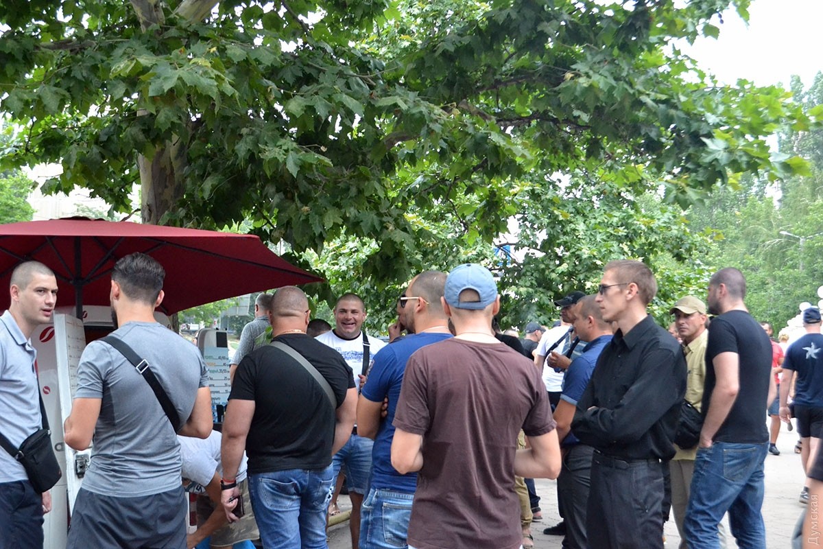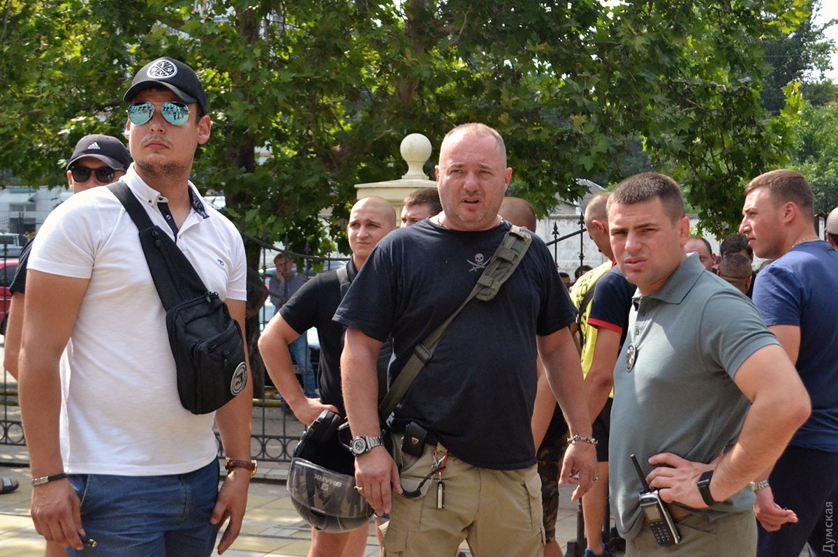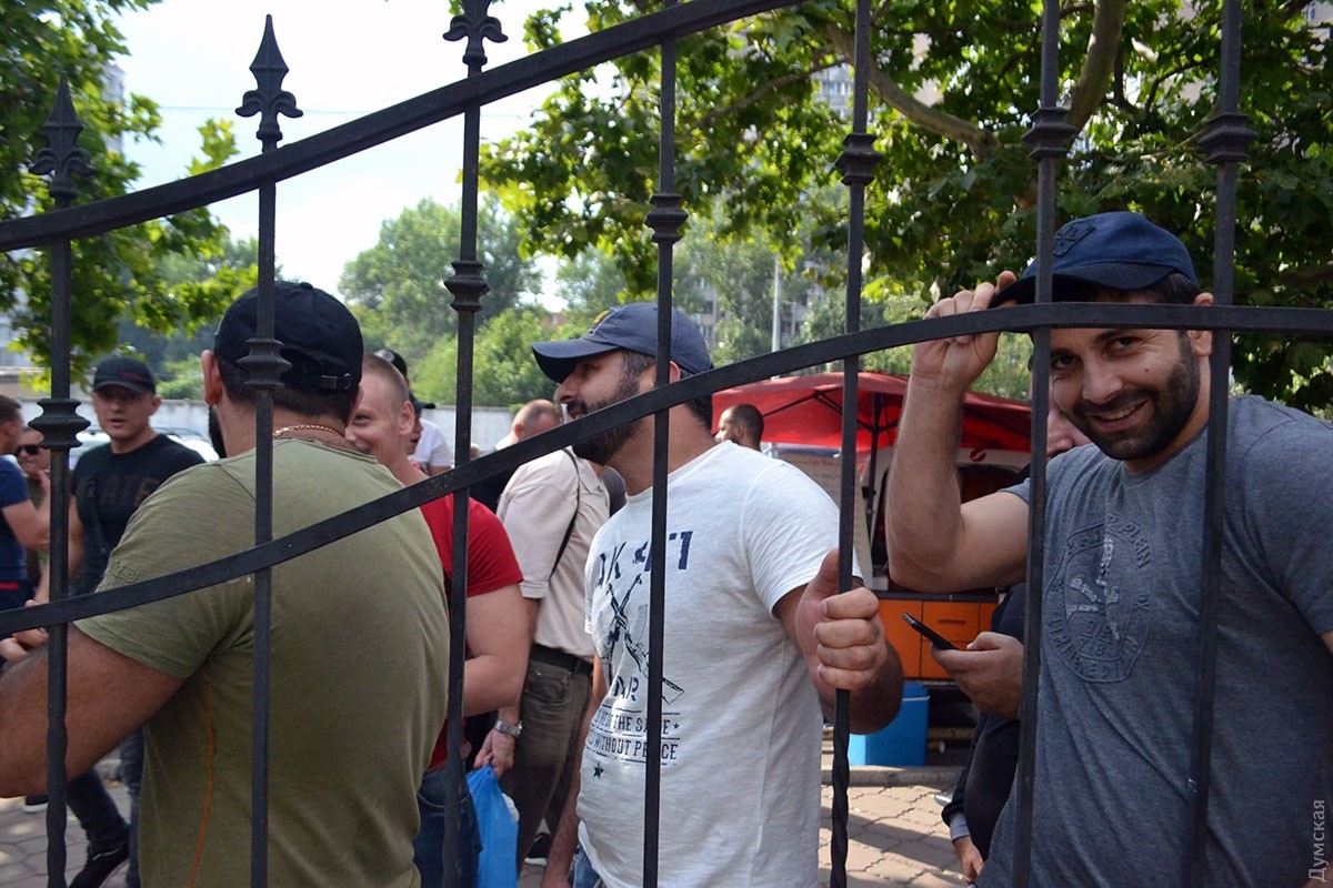 С обеда поддержать Голодка с товарищами пришли соратники, а позже к суду подъехали недруги — активисты патриотических организаций Одессы, РГБ, «Автомайдан» и других.
