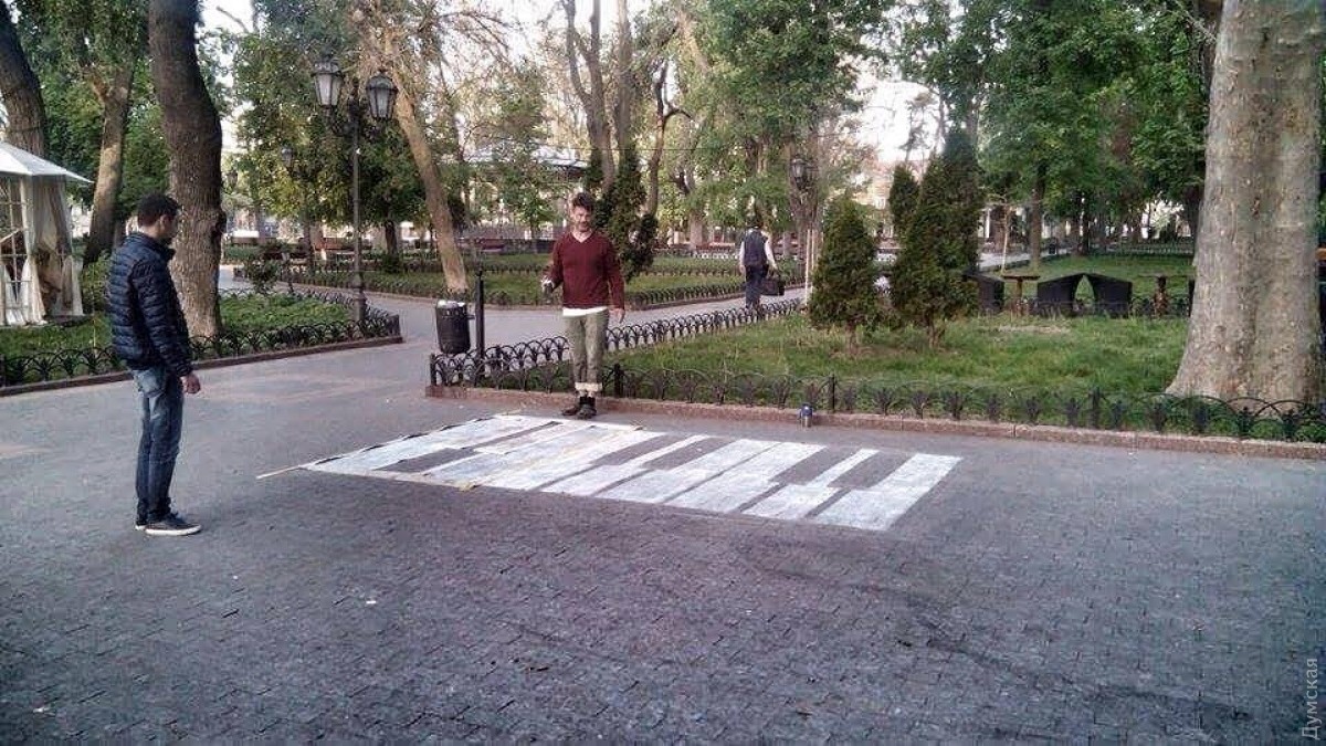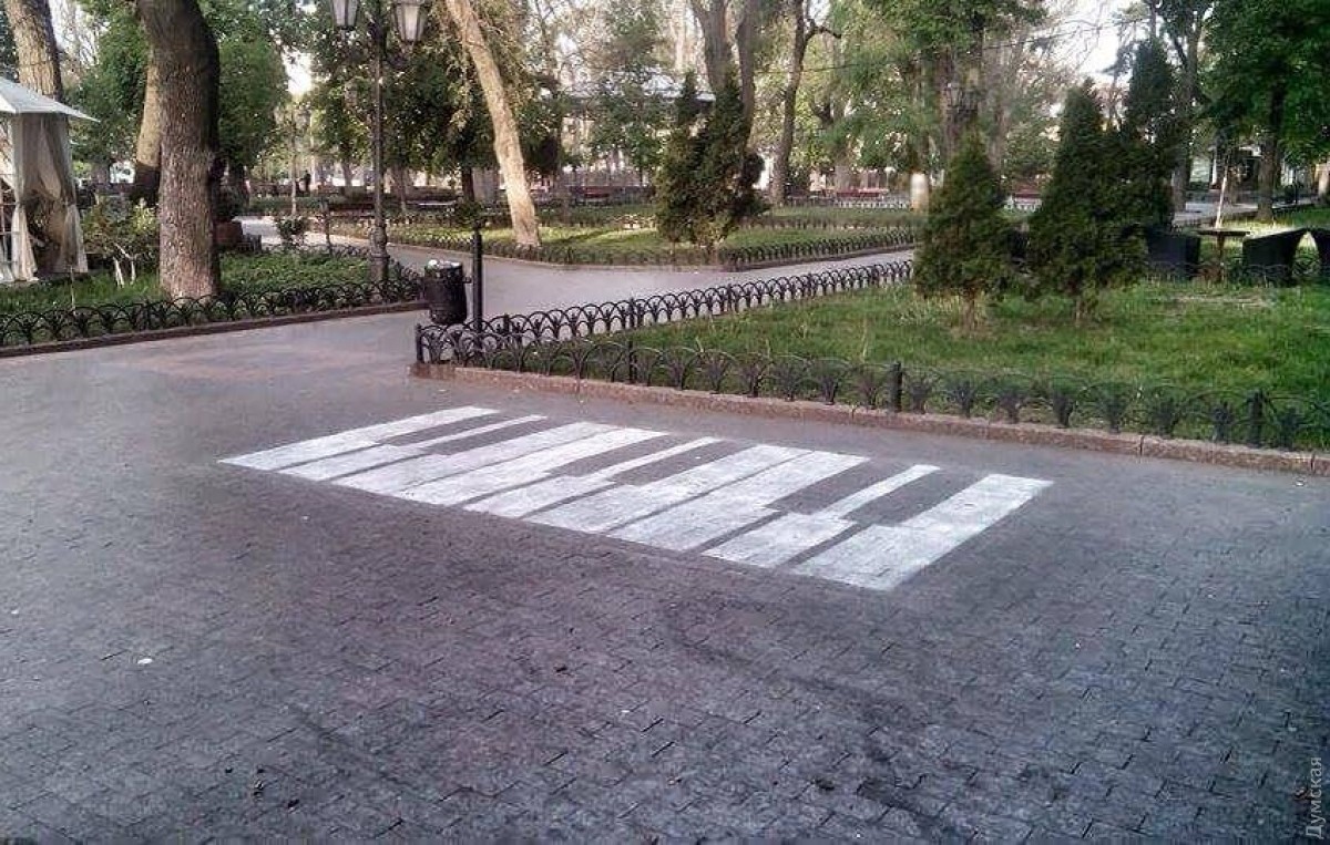 Такой стрит-арт не помешал бы на дорогах где стёрта зебра. А тут оно просто грязь.