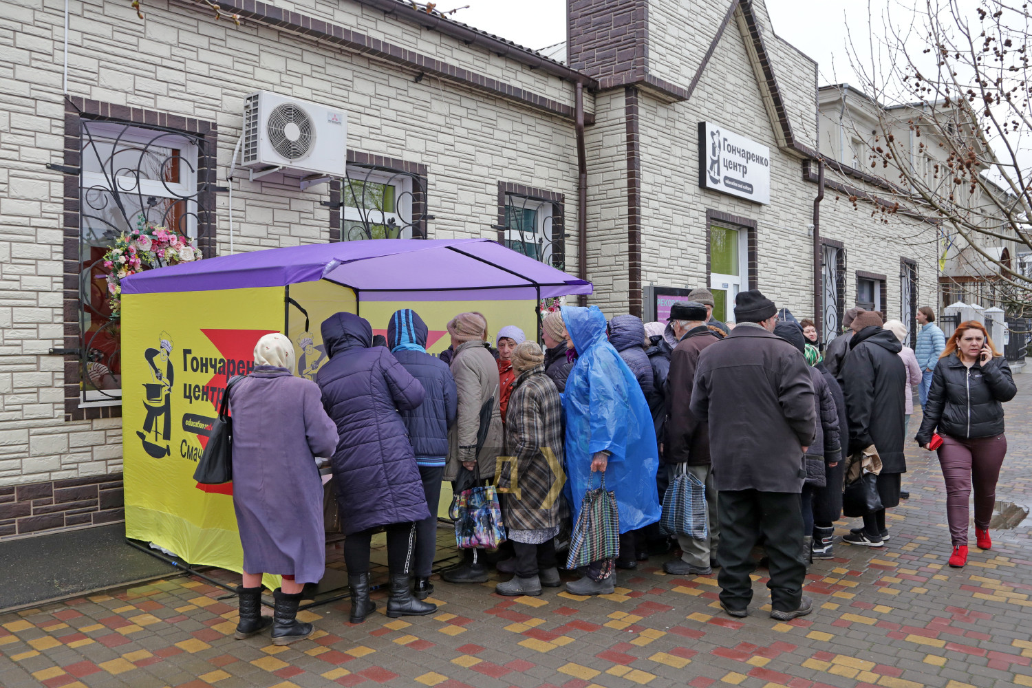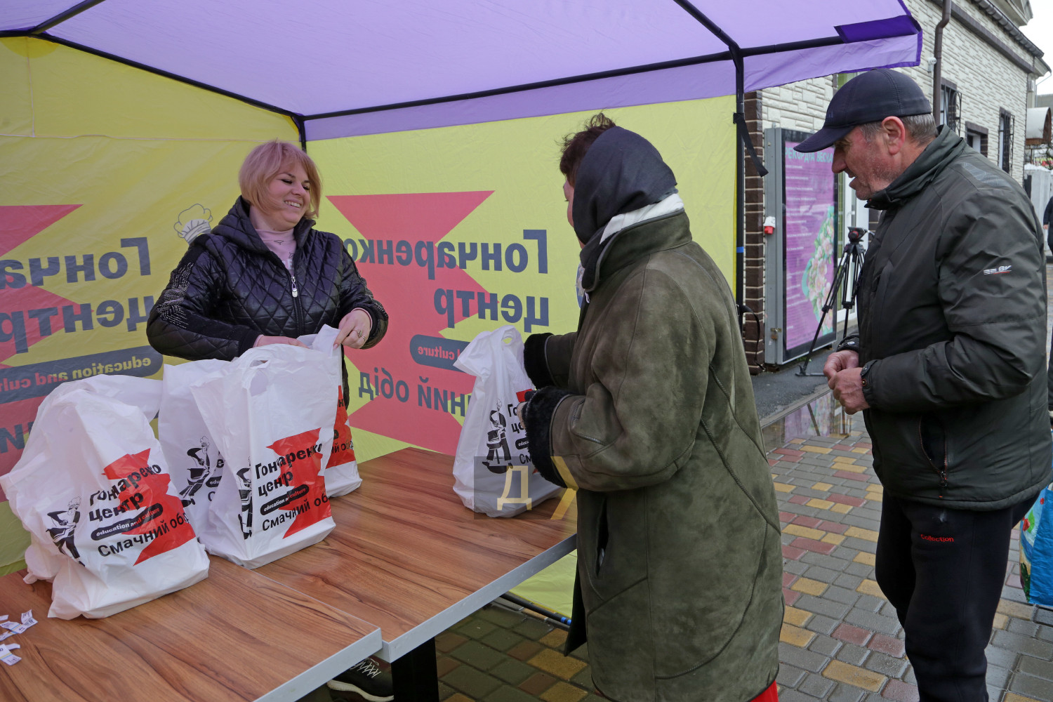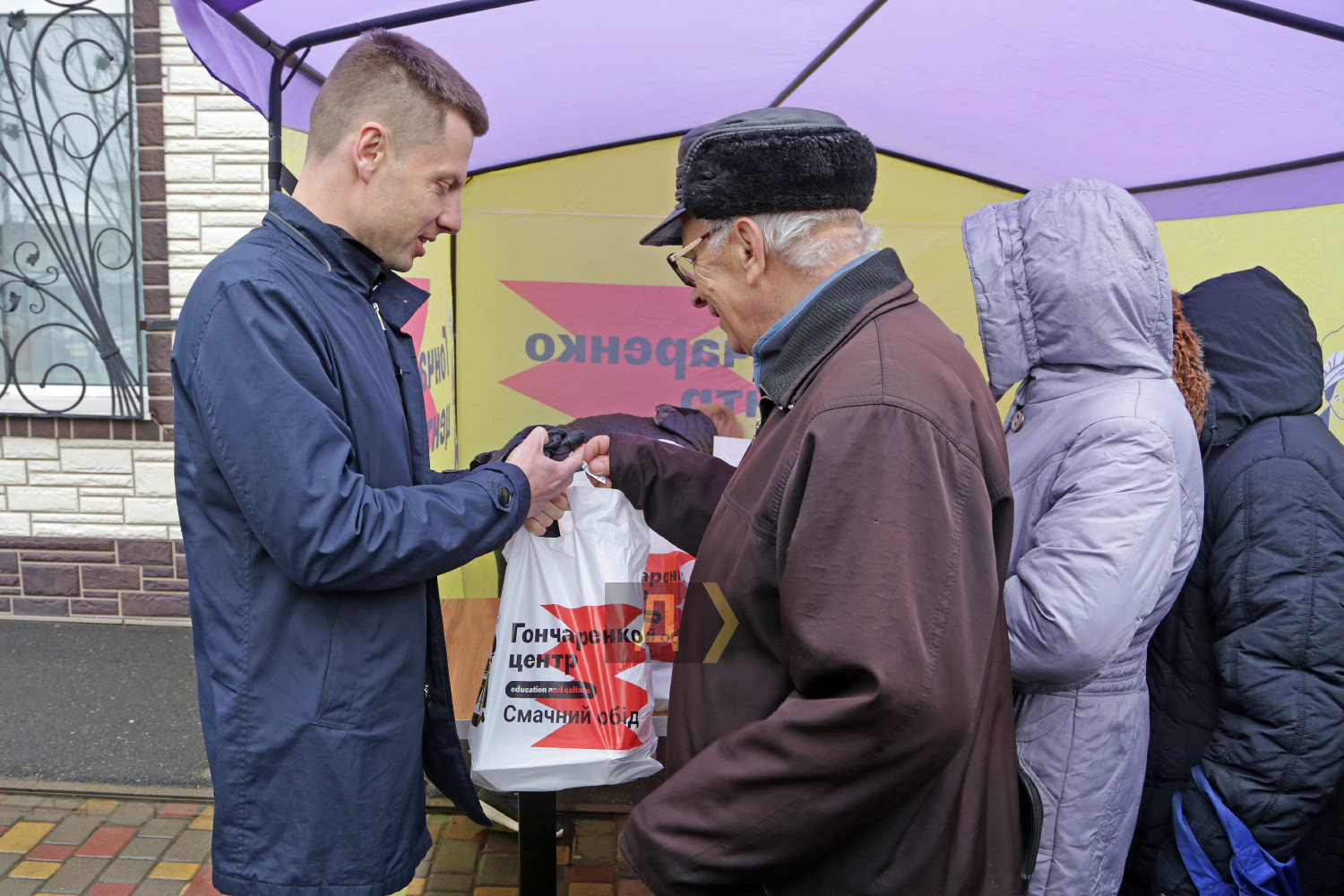 Гончаренко центр, розташований у невеликому містечку Подільськ на півночі Одеської області, вже понад півроку допомагає найбільш нужденним жителям. Волонтери центру двічі на тиждень роздають гарячі обіди пенсіонерам і малозабезпеченим. Щопонеділка та щочетверга на Привокзальній площі розгортають намет, у якому за спеціальними талонами близько п'ятдесяти нужденних можуть отримати пакет із гарячим харчуванням. Учора в продуктовому наборі від волонтерів був український борщ зі сметаною, картопляне пюре з котлетою, овочевий салат зі свіжими огірками та капустою, пачка печива та хліб. Оксана Бакумова — волонтер Гончаренко центру в Подільську, мати трьох дітей. Її чоловік захищає Україну на фронті. Оксана вже вісім місяців готує обіди для пенсіонерів та малозабезпечених. «Ми намагаємося забезпечити різноманітне меню. Перша страва — український або «зелений» борщ, на друге — каші, пюре з котлетами або куркою, печиво, обов'язково салат зі свіжих овочів і чай. Намагаємося на своєму місці робити все для нашої Перемоги», — каже Оксана. Пенсіонерка Валентина Іванівна часто приходить до Гончаренко центру по допомогу: «Від імені всіх пенсіонерів хочу подякувати волонтерам за смачні обіди. У такий важкий час ми отримуємо велику підтримку, спасибі вам за це». За час роботи волонтери подільського Гончаренко центру приготували і роздали вже понад 3,5 тисячі гарячих обідів. СМЕРТЬ РОСІЙСЬКИМ ОКУПАНТАМ! Помітили помилку? Виділяйте слова з помилкою та натискайте control-enter