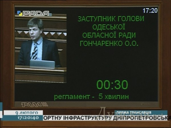 Заместитель председателя Одесского областного совета Алексей Гончаренко выступил в Верховной Раде на парламентских слушаниях, посвященных оздоровлению детей и молодежи.