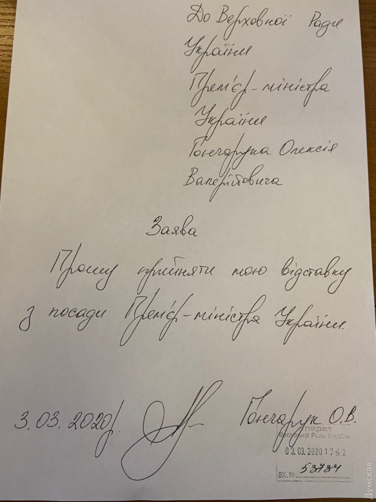 В сети появилось заявление премьер-министра Алексея Гончарука об отставке. Его в своем Telegram-канале опубликовал нардеп от партии «Слуга народа» Александр Качура. Заявление Гончарука было рассмотрено на комитете организации госвласти, где «за» проголосовали 23 члена из 25 присутствующих. Таким образом, комитет рекомендовал Раде принять отставку премьер-министра. Парламент рассмотрит данный вопрос на внеочередном заседании сегодня в 16:00. Члены комитета должны собраться сегодня в течение дня еще раз, чтобы рассмотреть представление президента Владимира Зеленского на нового премьера, которым должен стать нынешний вице-премьер Денис Шмыгаль. СМЕРТЬ РОССИЙСКИМ ОККУПАНТАМ! Заметили ошибку? Выделяйте слова с ошибкой и нажимайте control-enter |