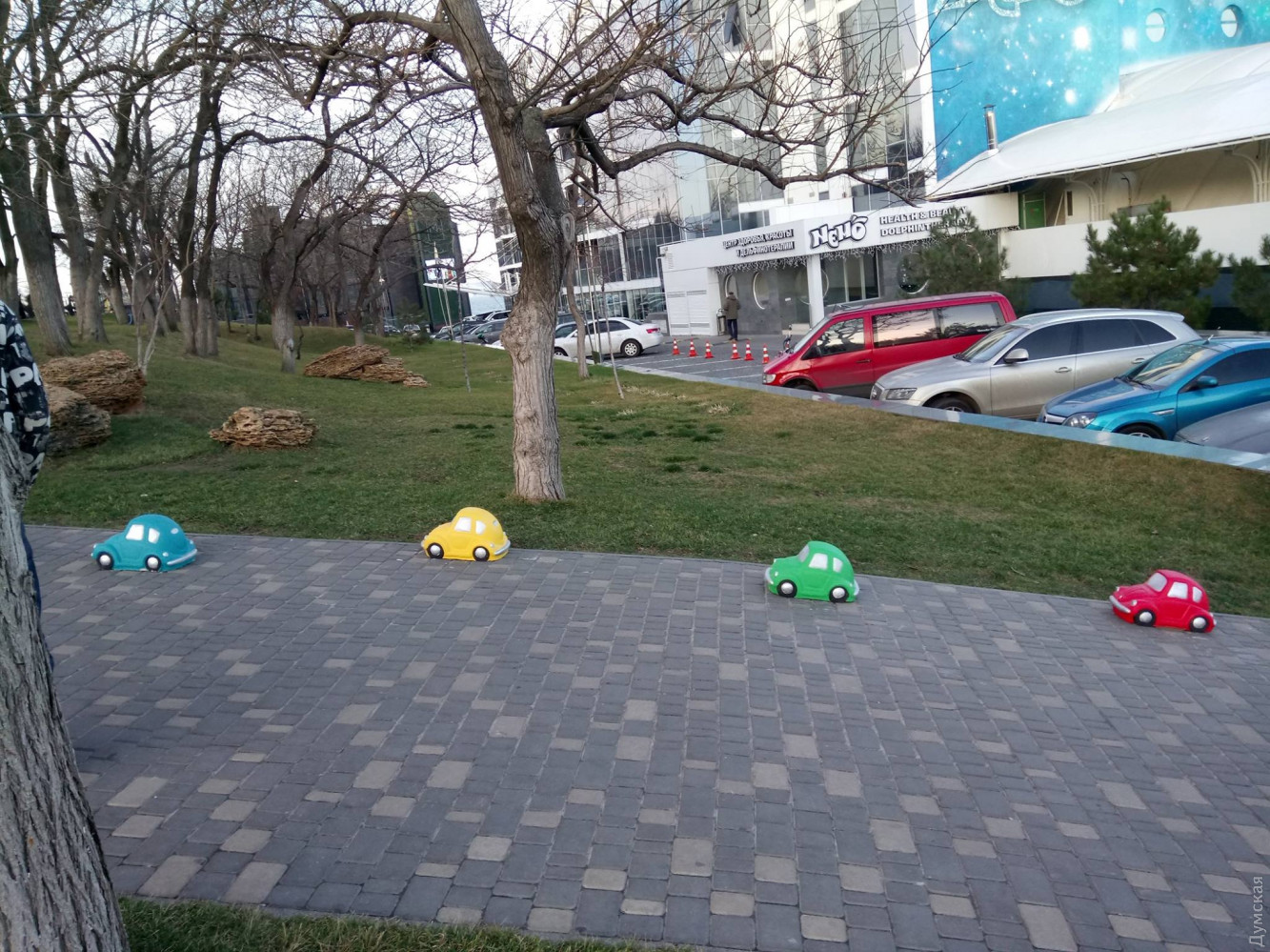 У детской площадки на Ланжероне теперь стоят забавные арт-ограничители: четыре машинки и пара огромных кед. Их задача — ограничить заезд автомобилей в зеленую зону. Авторы – Анастасия Кириллина и Всеволод Макавей.