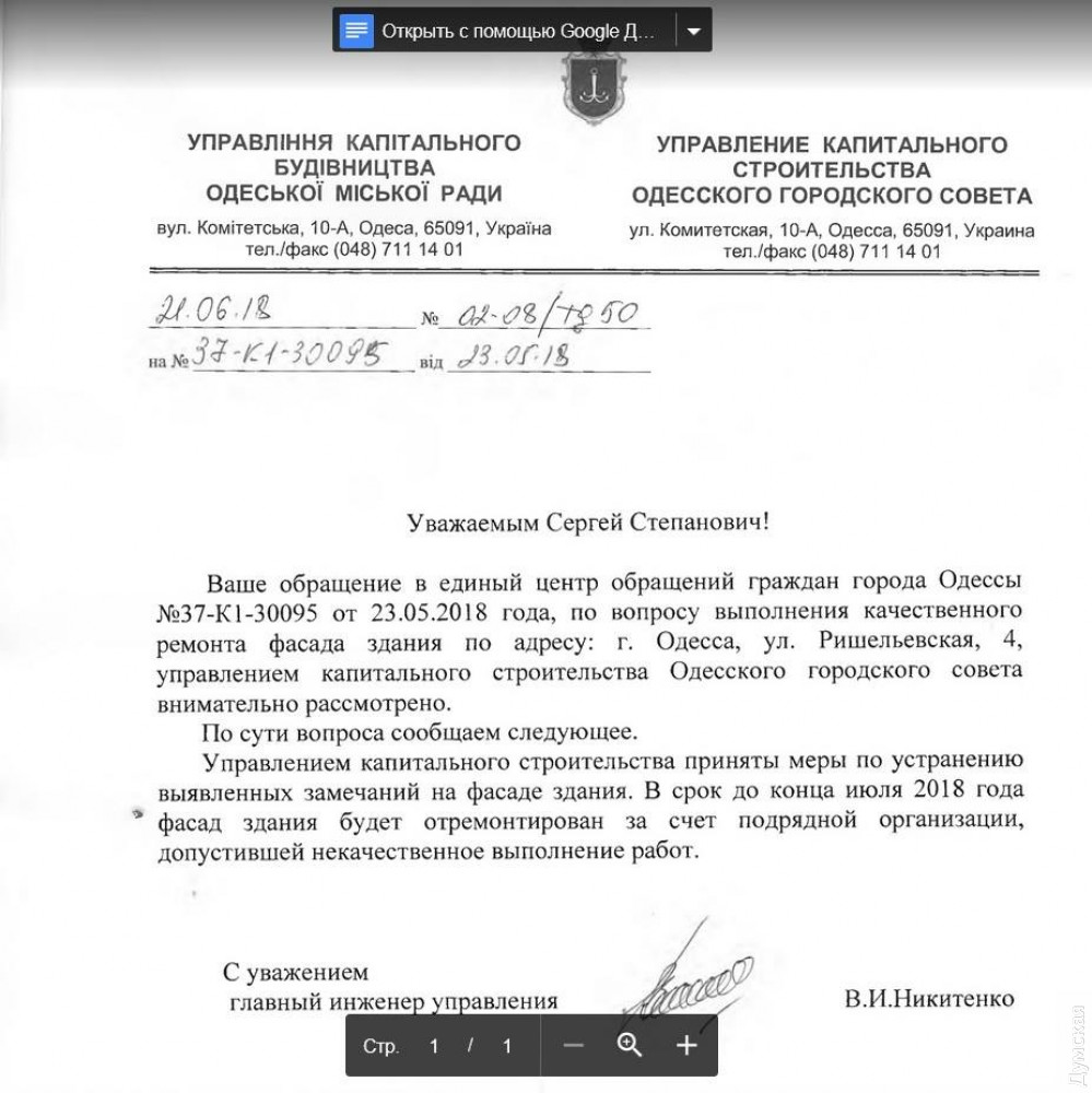 Халтура за 8 миллионов: фасад одесского Дворца бракосочетаний облущился после недавнего ремонтаНе прошло и года после окончания ремонта здания Дворца бракосочетаний, расположенного на Ришельевской, как штукатурка фасада стала облущиваться, а кое-где и вовсе отваливаться. Работы, напомним, проводила частная компания «Сеал Строй», предложив в системе электронных торгов Prozorro наиболее выгодное ценовое предложение на сумму 8 миллионов 357 тысяч гривен. Ремонт закончили в конце 2017 года. Как сообщил одесский блогер Олег Коваленко, еще в мае стала проявляться халтура, и он обратился в Единый центр обращений граждан мэрии, указав в своем обращении на недочеты, с тем, чтобы городские власти их исправили за счет подрядчика. В ответе Управления капитального строительства Одесского горсовета говорилось о том, что до конца июля 2018 года фасад будет отремонтирован за счет подрядчика — компании «Сеал Строй». Однако, как видно, никаких мер предпринято не было, и фасад здания продолжает разрушаться. Отметим, «Сеал Строй» — частное предприятие с уставным капиталом 3 миллиона гривен, которое по документам принадлежит Виктории и Александру Напханюк. Эта фирма регулярно получает подряды на различные работы в учебных заведениях и других коммунальных зданиях. В марте 2017 года совладелец компании оскандалился, совершив на своем черном «Мерседесе» «пьяное» ДТП на Ришельевской. фото — Олег Коваленко, Евгений Сокольский СМЕРТЬ РОСІЙСЬКИМ ОКУПАНТАМ! Помітили помилку? Виділяйте слова з помилкою та натискайте control-enter |