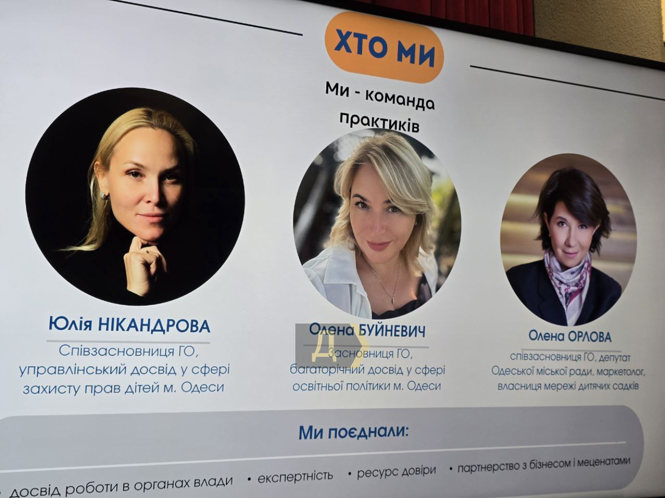 Організацію створили три відомі в місті жінки, які багато років працювали у сфері місцевого самоврядування. Олена Буйневич, яка очолювала департамент освіти і науки, Юлія Нікандрова, ексголова служби у справах дітей, та Олена Вододюк (Орлова), депутат міськради і засновниця мережі приватних дитячих садків.