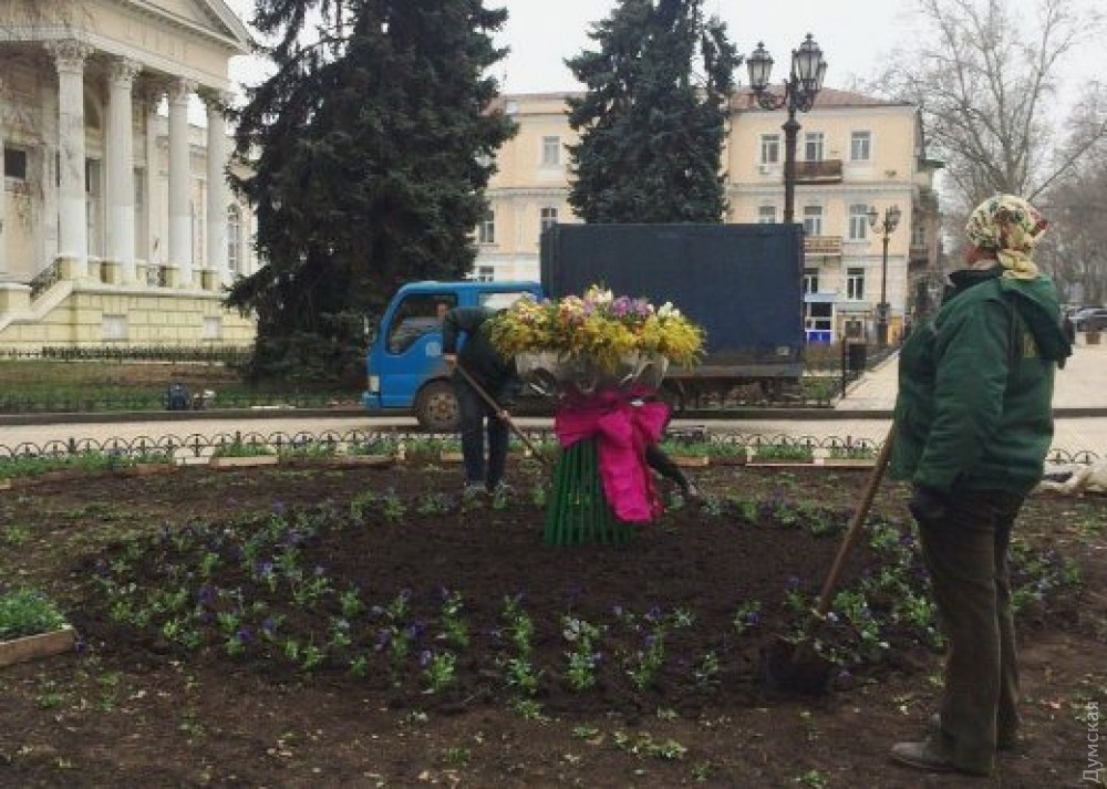 В канун 8 Марта сотрудники предприятия «Горзелентрест» украсили клубмы оригинальными цветочными композициями. Об этом сообщает пресс-служба муниципалитета. Композиция в виде букета цветов теперь украшает клумбу возле одесской мэрии. Для оформления флористы выбрали первые весенние цветы: мимозу, тюльпаны и фрезию. Каркас был создан озеленителями предприятия год назад. Тогда композиция украшала клумбу на Думской площади. В этом году для создания весеннего настроения специалисты использовали в композиции лозу вербы и цветочный горшок с цветущей виолой. Кроме того, озеленители начали проводить первые весенние работы по благоустройству Одессы: уже ведется подрезка декоративных ив и кустов роз, а городские клумбы подготавливают к высадке весенников. СМЕРТЬ РОСІЙСЬКИМ ОКУПАНТАМ! Помітили помилку? Виділяйте слова з помилкою та натискайте control-enter |
